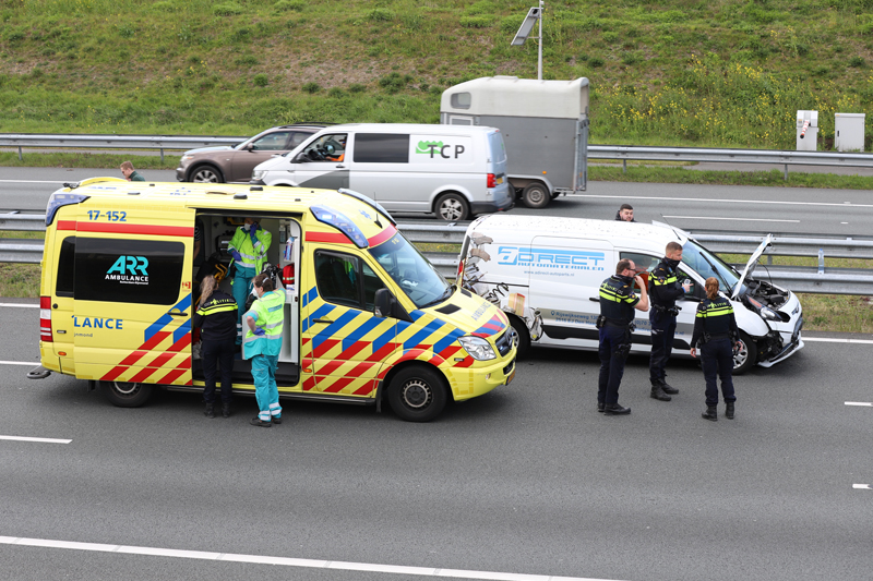 Net voor de afslag Delft kwamen twee busjes en een auto met elkaar in botsing. Na de aanrijding werden de politie, brandweer en ambulance met spoed gealarmeerd.