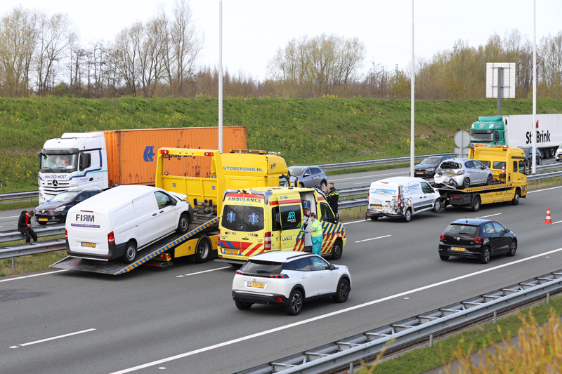 Door het ongeval waren twee rijbanen afgesloten, dit veroorzaakt een flinke file. Meerdere mensen zijn door het aanwezige ambulancepersoneel gecontroleerd in de ambulance, zover bekend is er niemand vervoerd. De schade aan alle drie de voertuigen is flink, deze zijn door een berger afgevoerd.