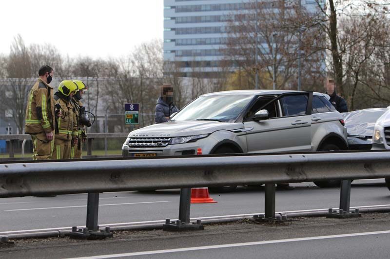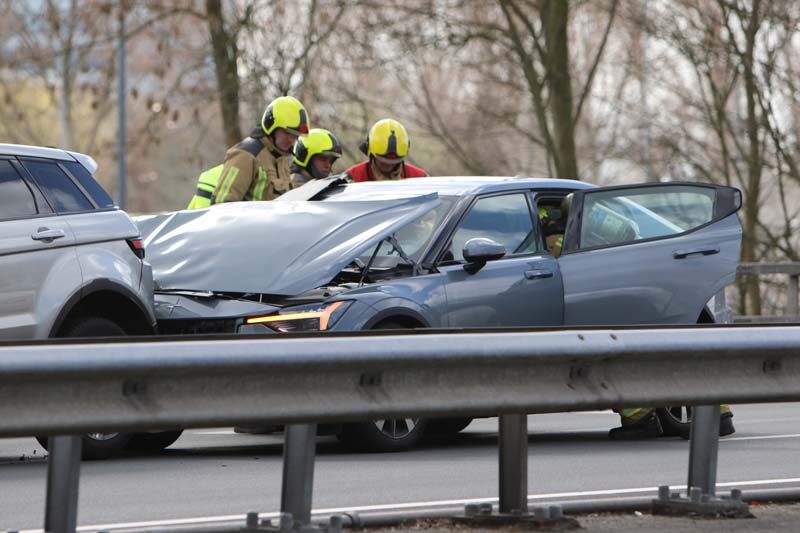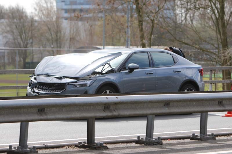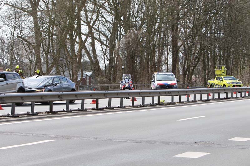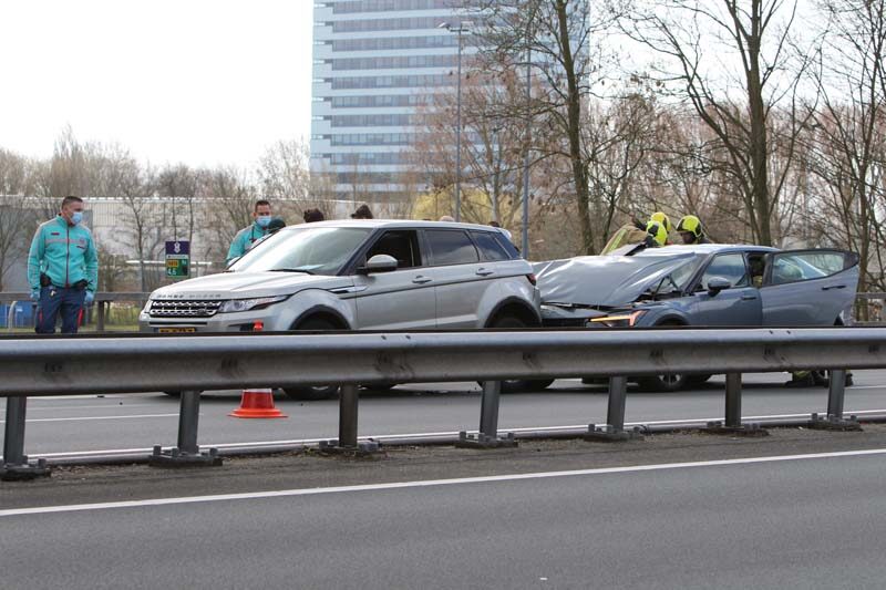 De aanrijding gebeurde net voor de afrit naar de Schoemakerstraat. Door een nog onbekende reden kwamen de twee voertuigen met elkaar in botsing.