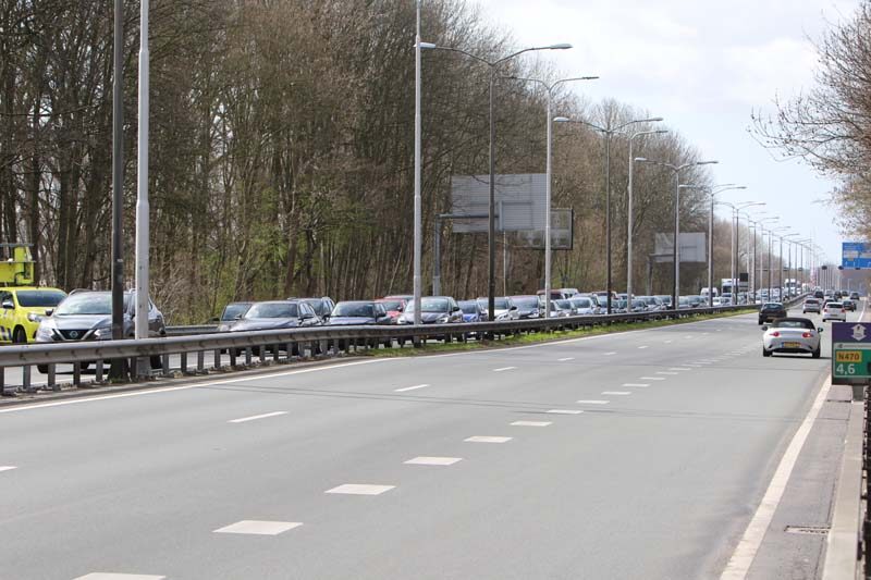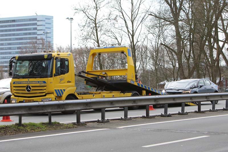 Een berger is ter plaatse om het achterste voertuig mee te nemen. Door de aanrijding ontstond een flinke file in de richting van de A13.