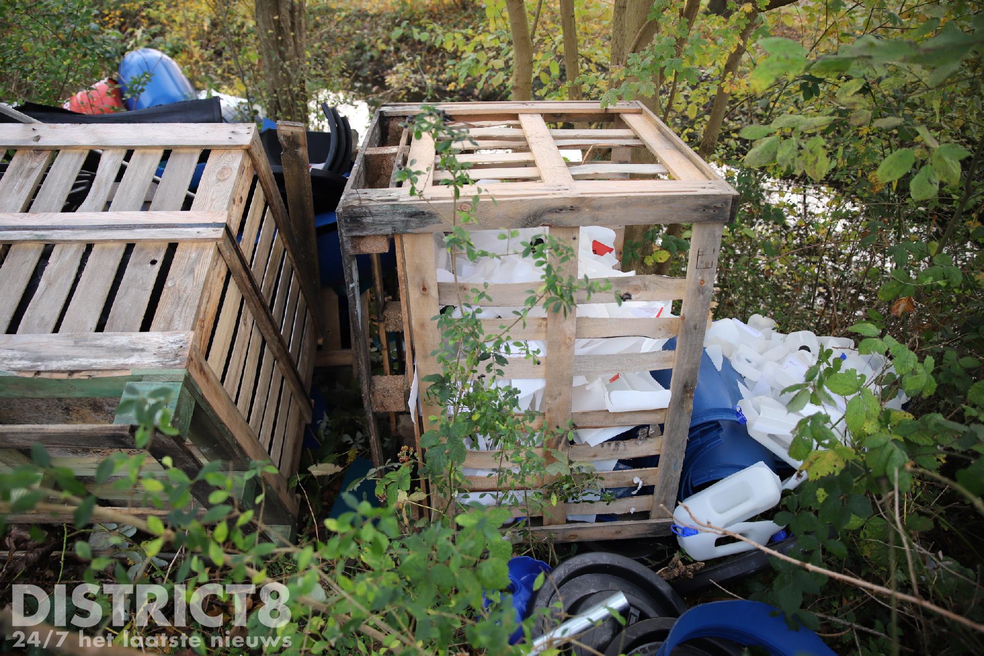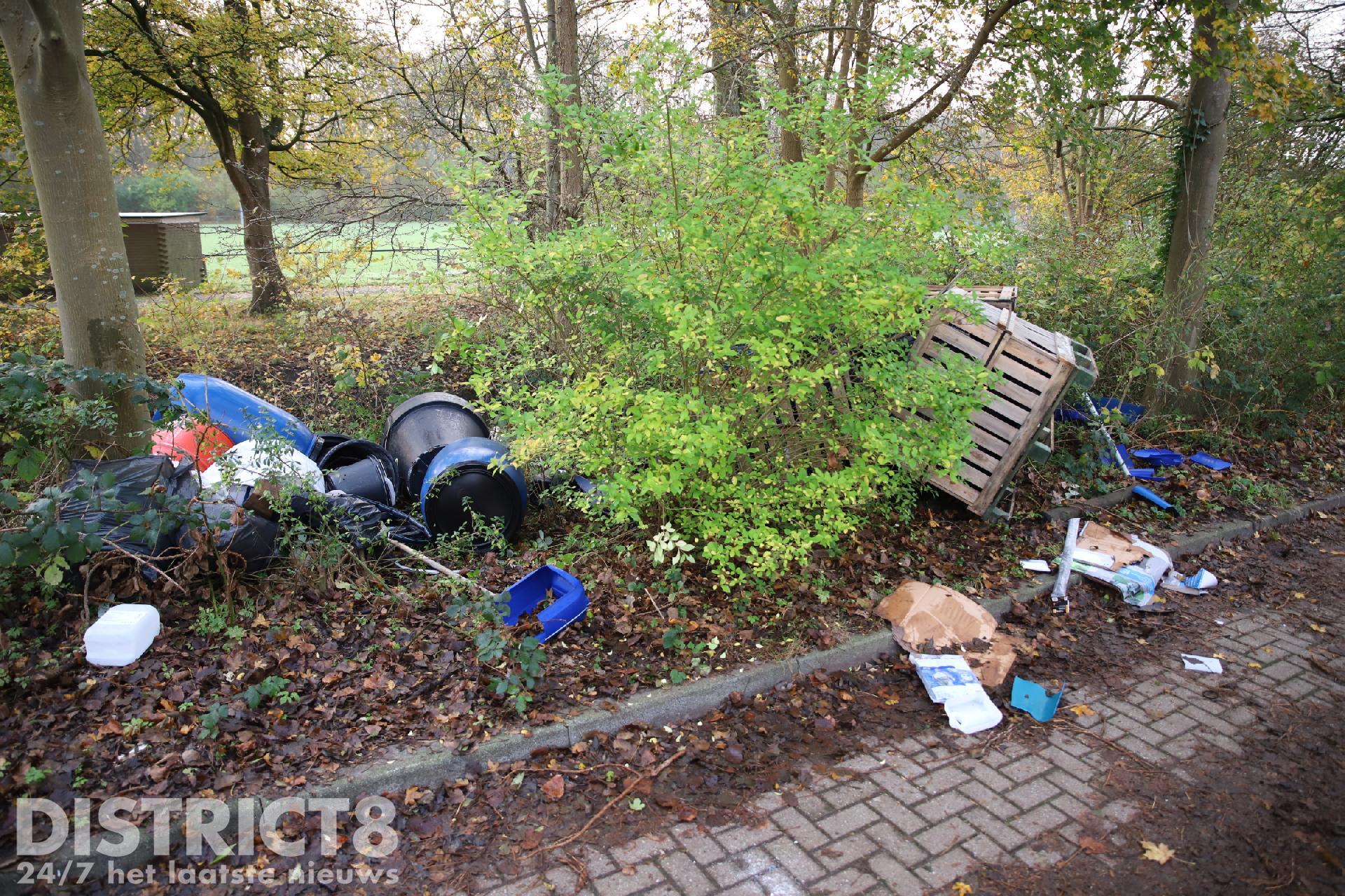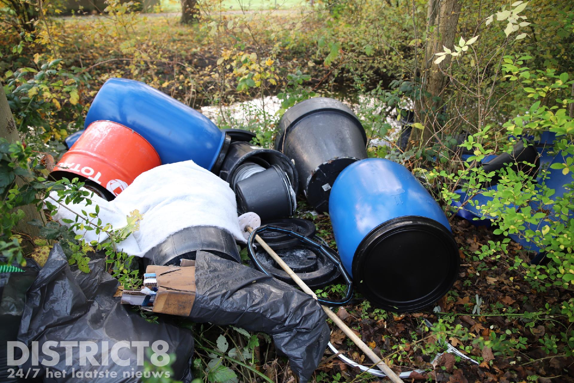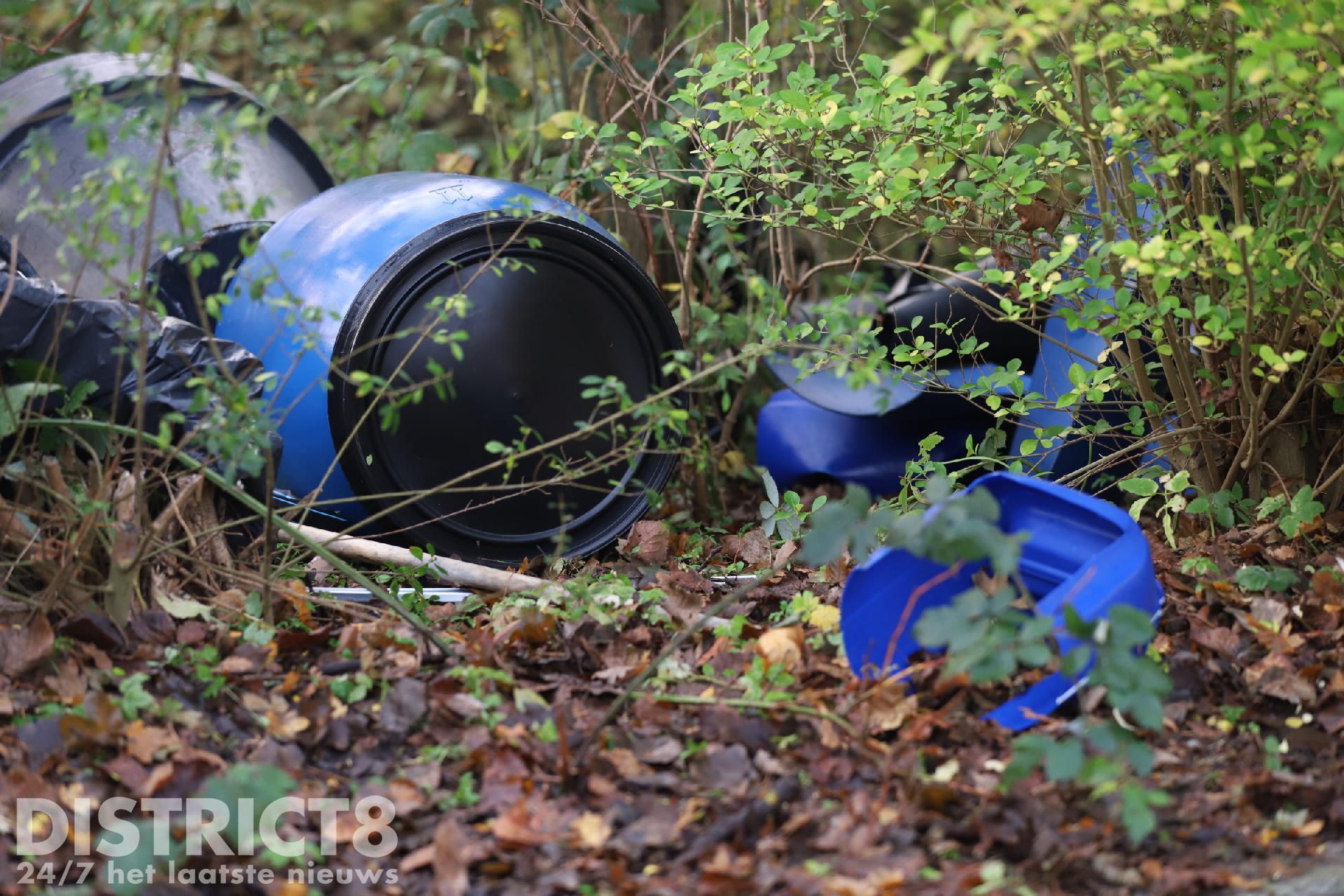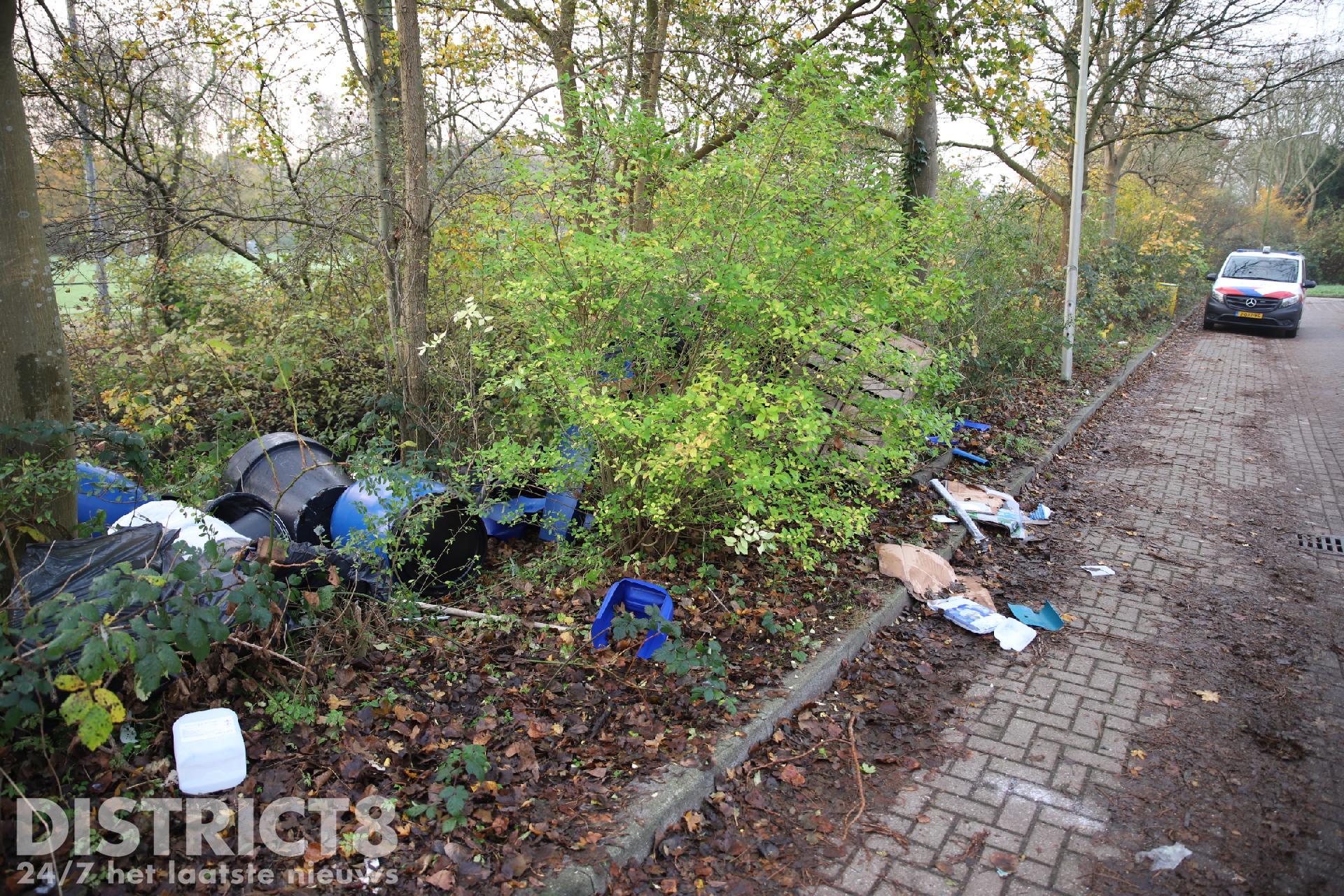 Woensdagochtend zag een voorbijganger meerdere vaten tussen de struiken liggen en belde hierop de politie. Naast meerdere vaten werden er ook jerrycans en andere verdachte voorwerpen aangetroffen.