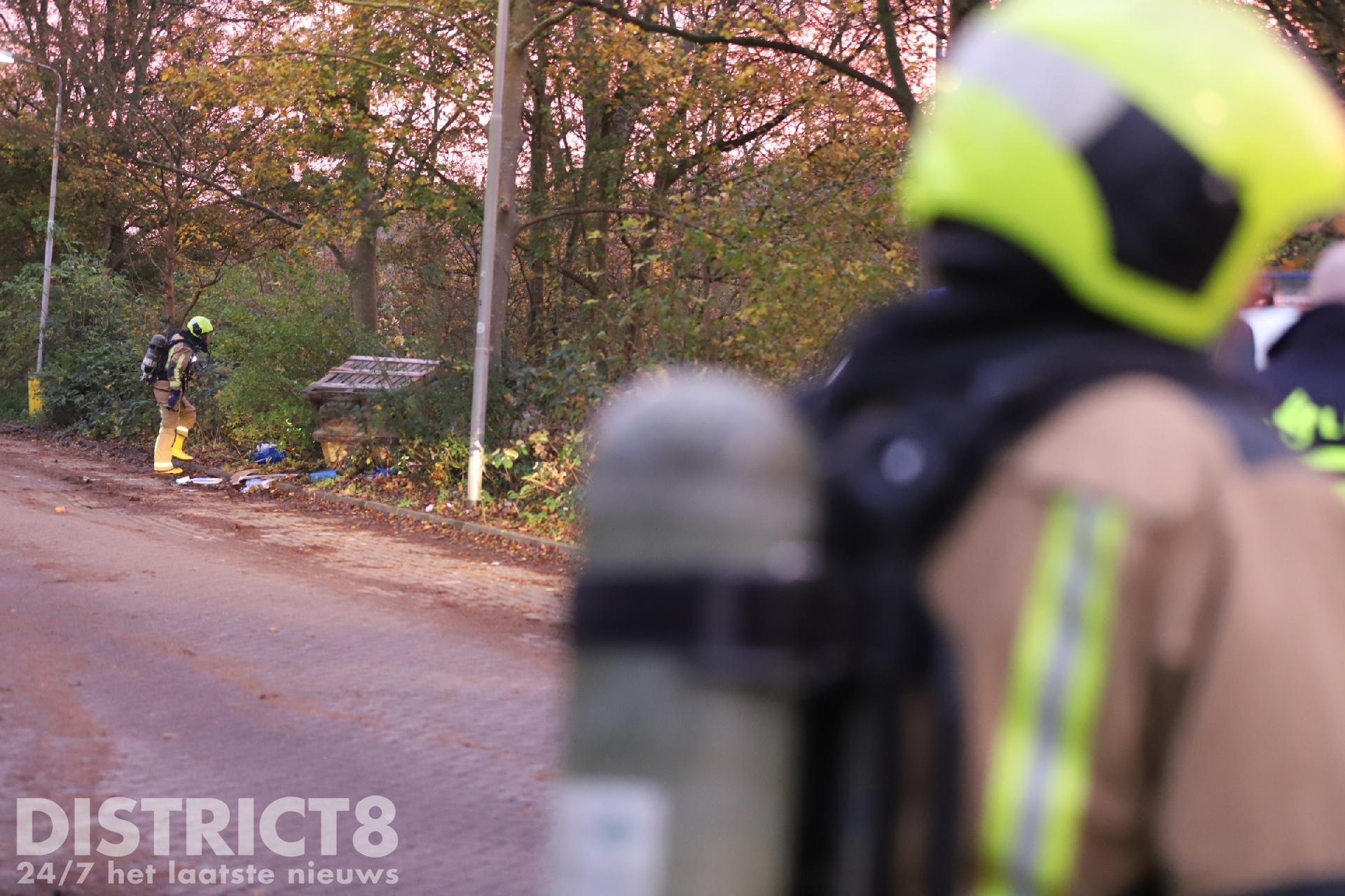 De brandweer kwam op verzoek van de politie ter plaatse om te onderzoeken of er geen gevaarlijke stoffen vrijkwamen uit het afval. Gelukkig bleek van een gevaarlijke situatie geen sprake.