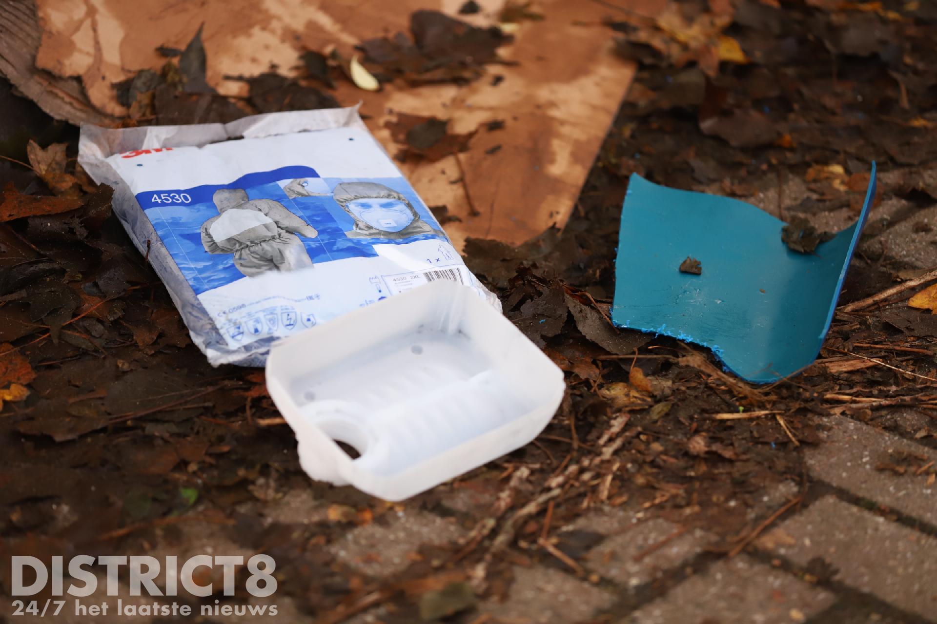 Flinke hoeveelheid afval uit drugslab gedumpt in bosschage Sportring Delft