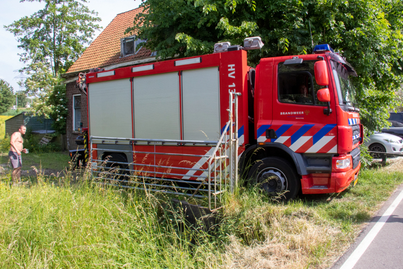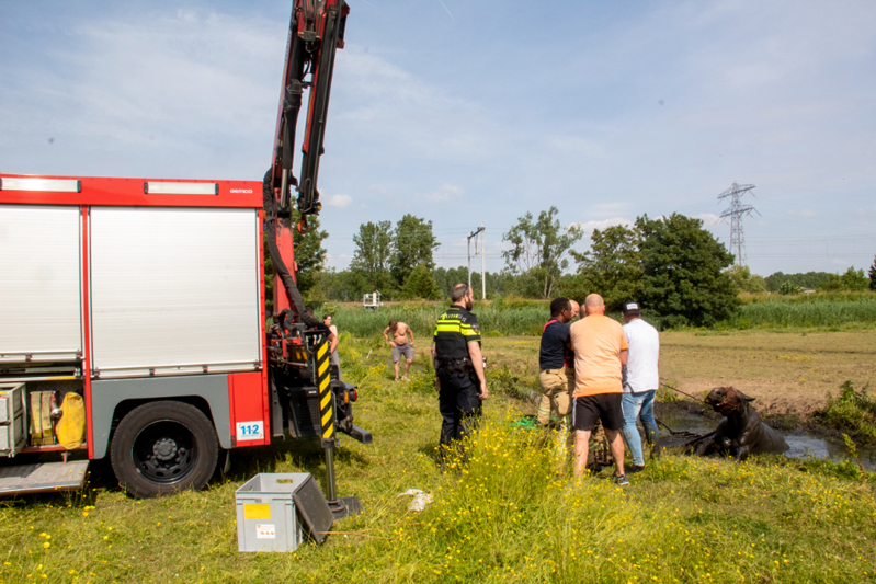 Flinke klus voor de brandweer, paard in/uit de sloot Kerkweg Schiedam