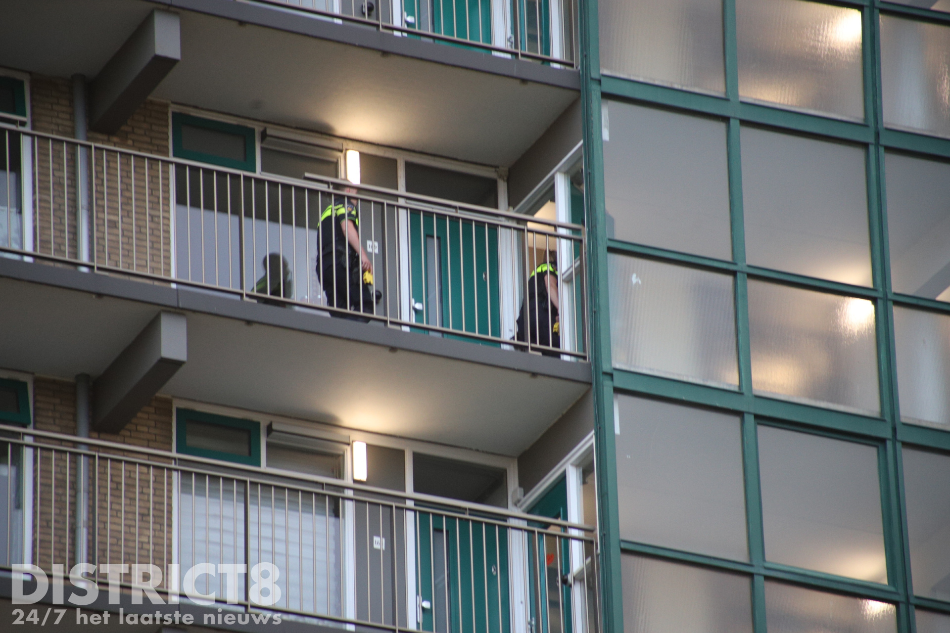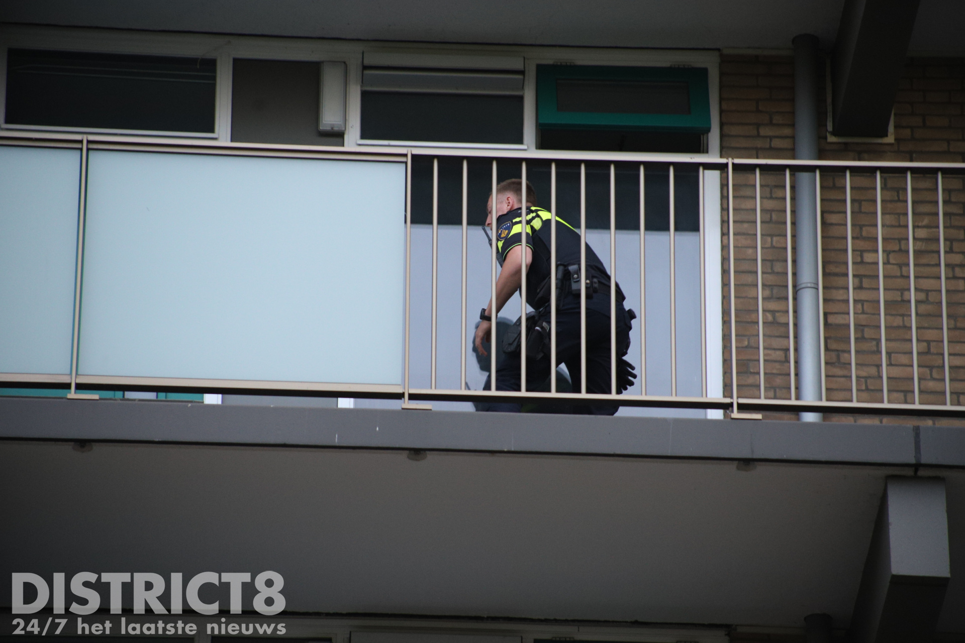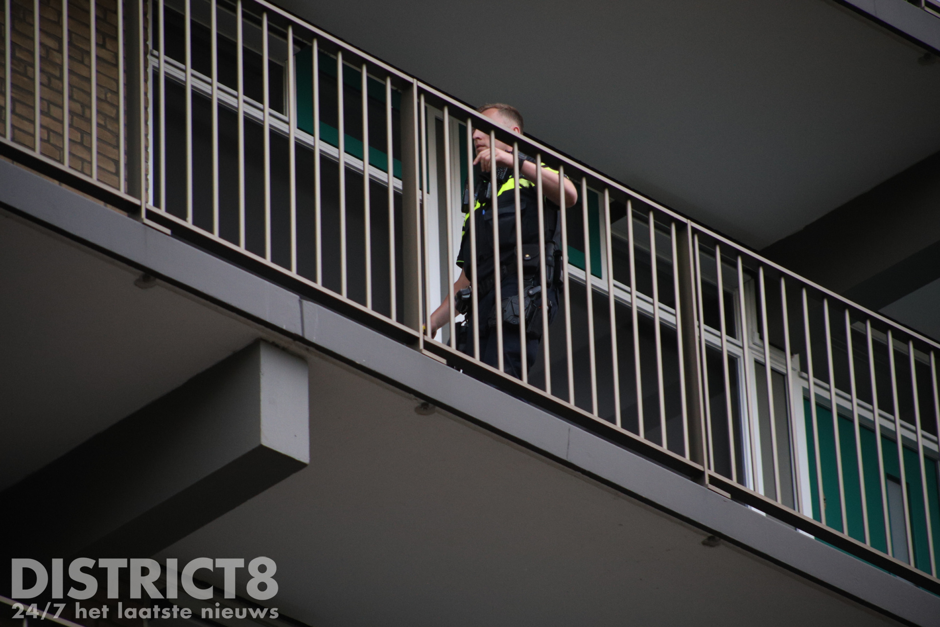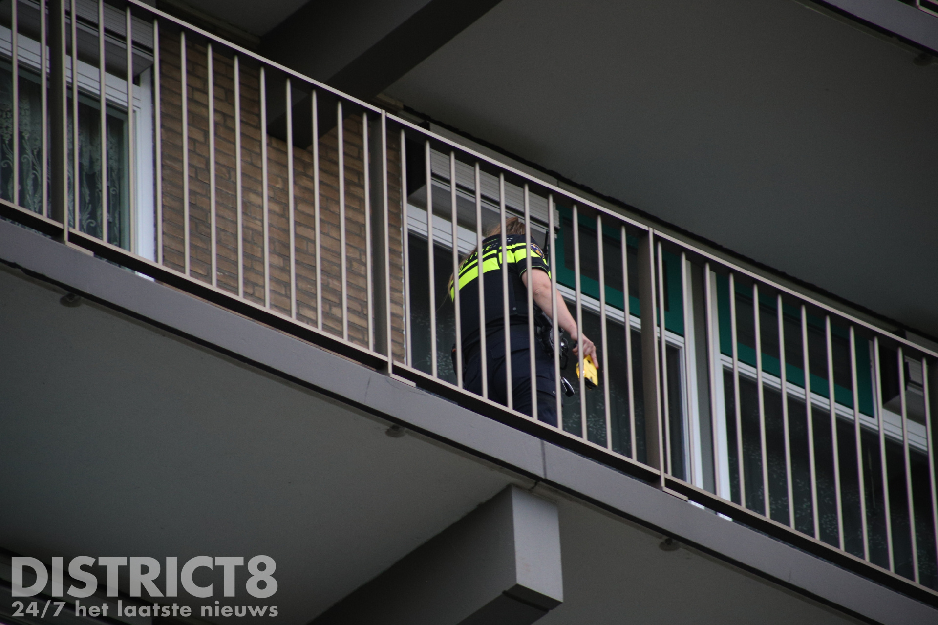 Meerdere agenten doorzochten de flat op zoek naar de inbreker. Na langdurig zoeken werd echter niemand aangetroffen, waarop de zoekactie werd gestaakt.