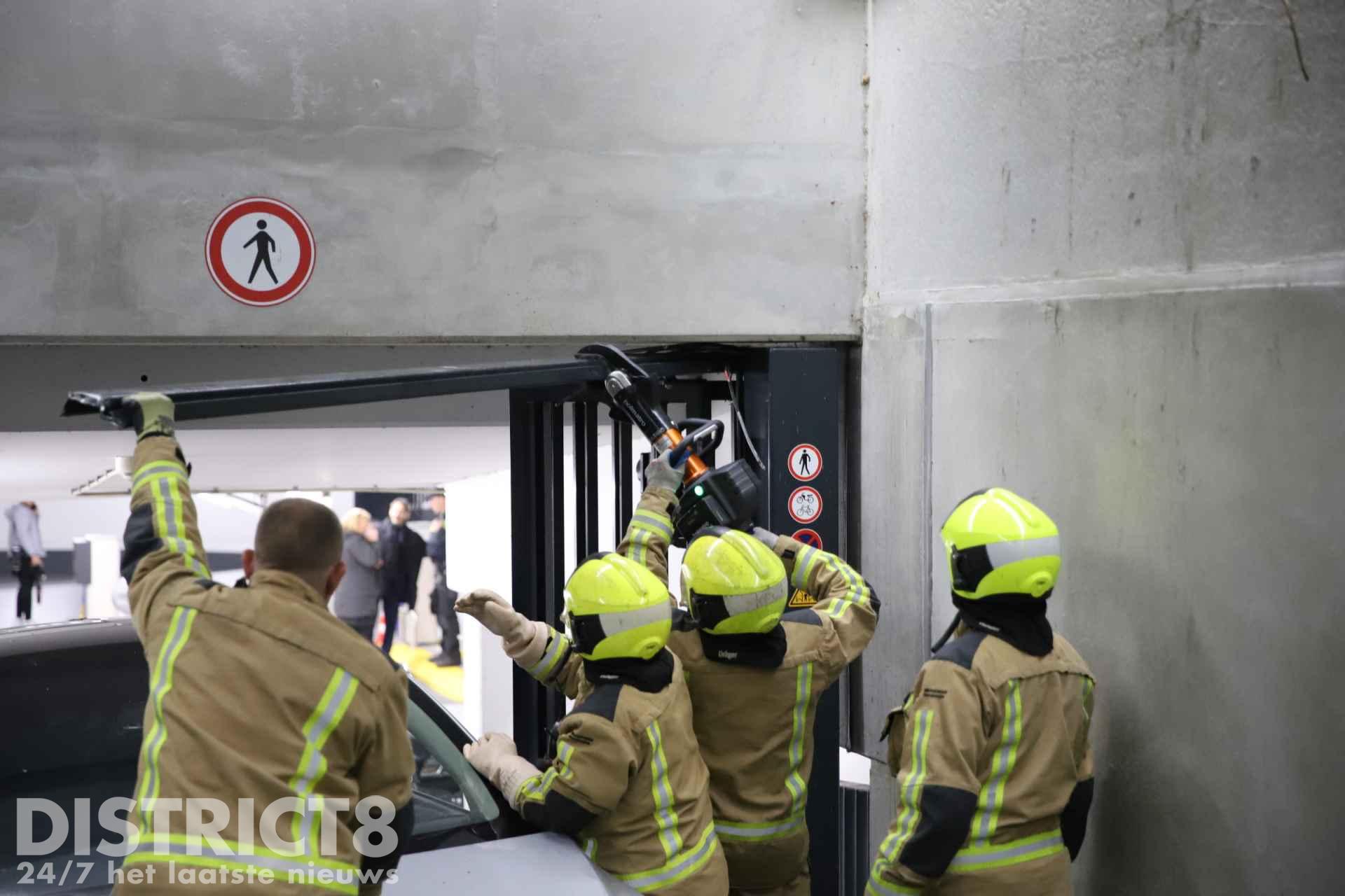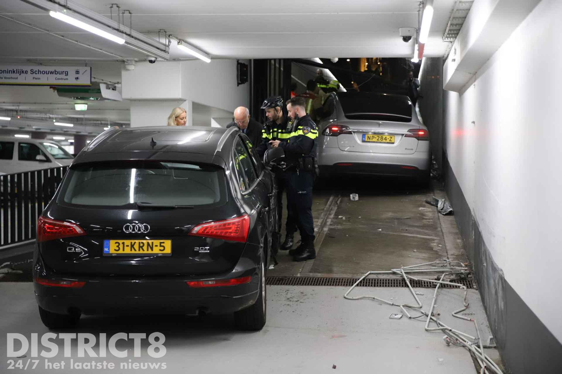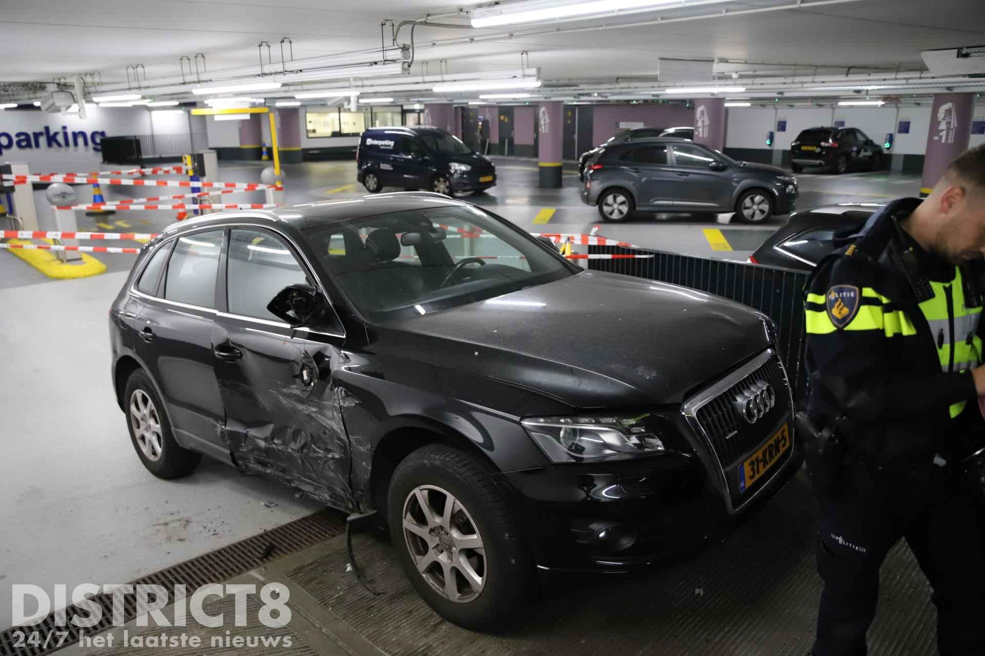 Beide voertuigen en meerdere objecten in de parkeergarage liepen flinke schade op.