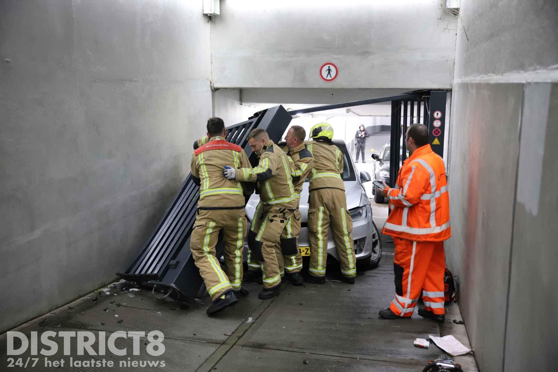 Den Haag – Bij het verlaten van de parkeergarage aan het Tournooiveld in Den Haag is het dinsdagavond goed mis gegaan. Een automobilist ramde het hek van de uitgang eruit.