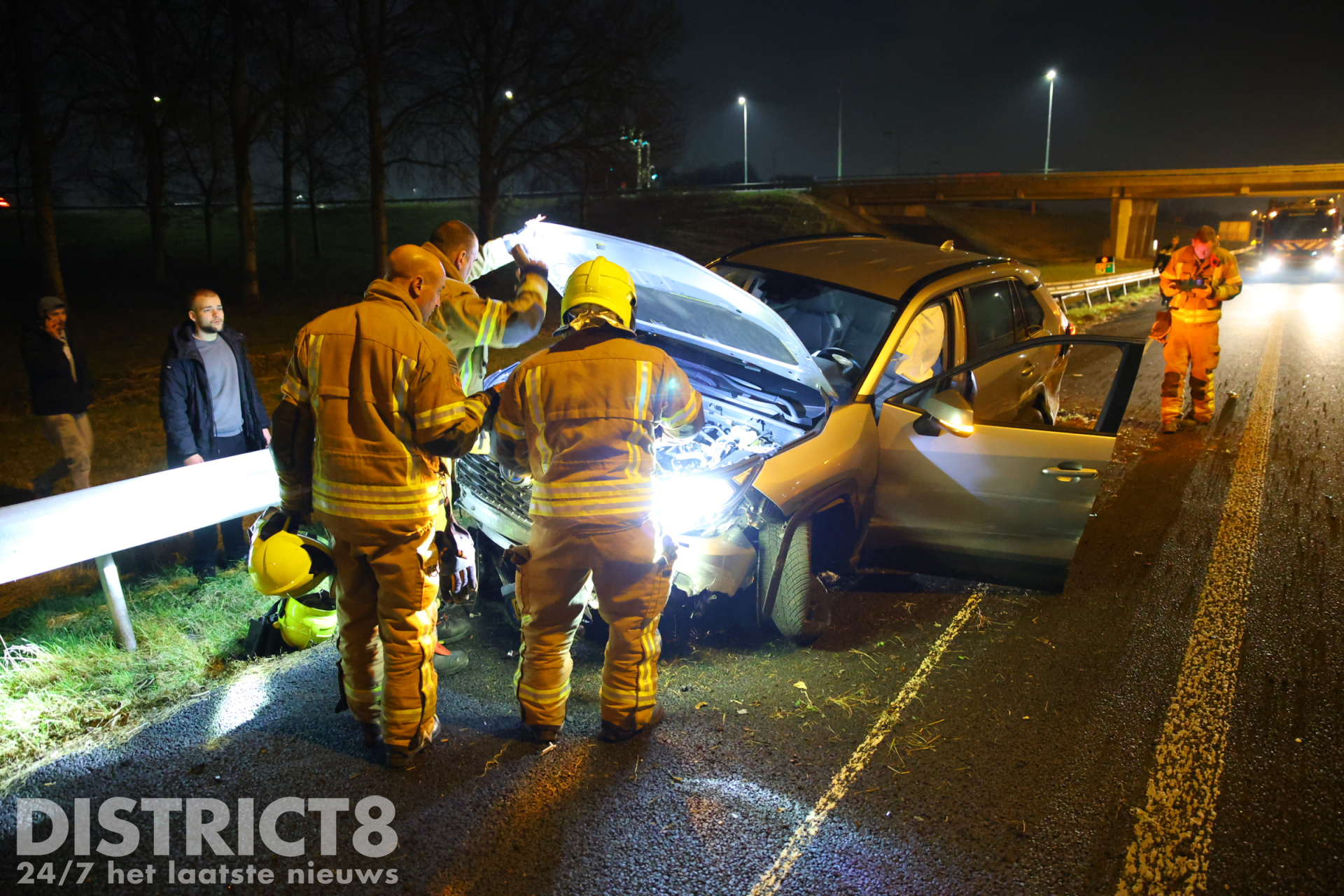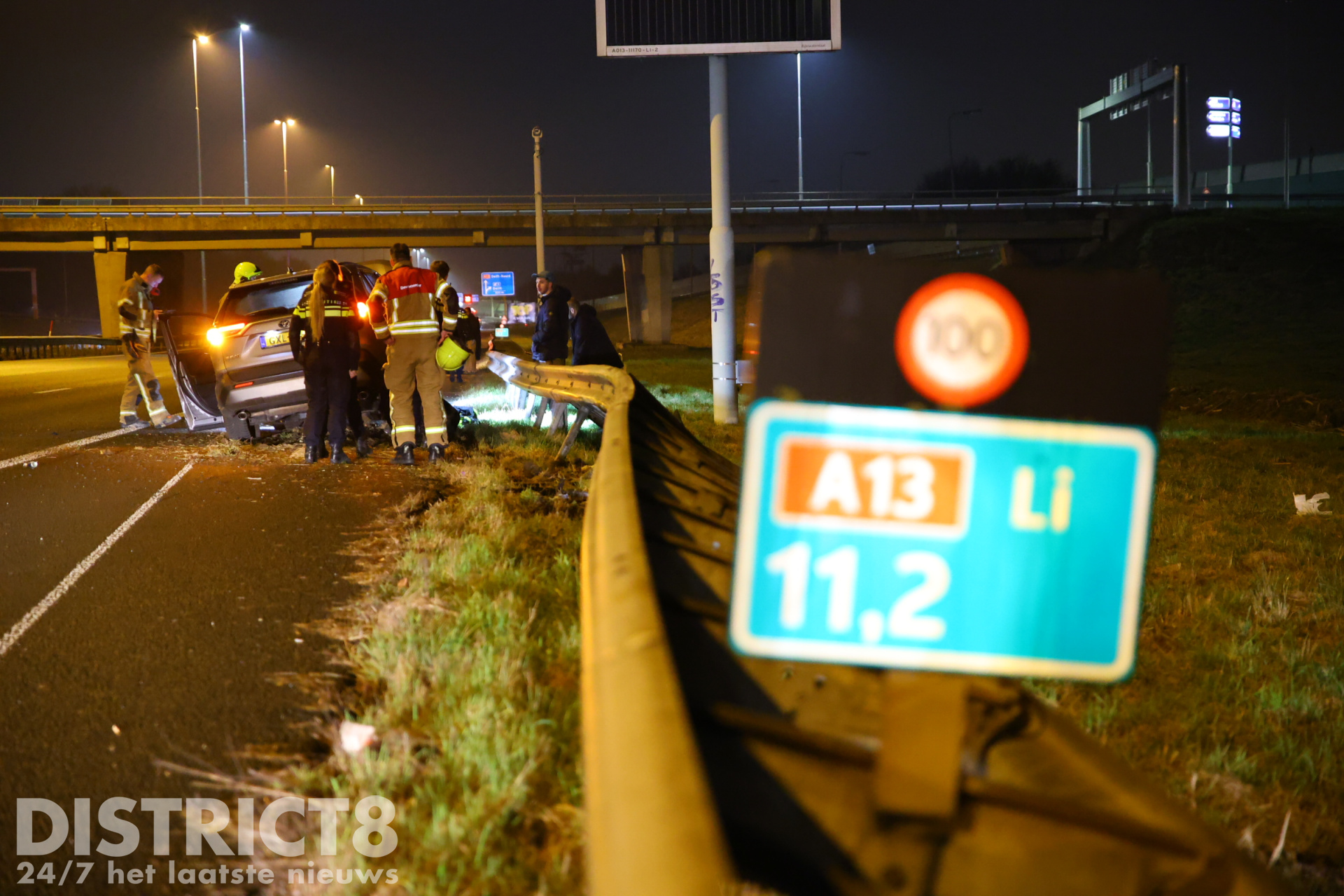 Na het ongeval werd meerdere keren 112 gebeld, de brandweer, politie en ambulancedienst werden met spoed ter plaatse gestuurd. Bij aankomst van de hulpdiensten beweerde beide inzittenden dat de bestuurder na het ongeval weggerend was en beide rijbanen van de A13 was overgestoken richting de Schoemakerstraat.