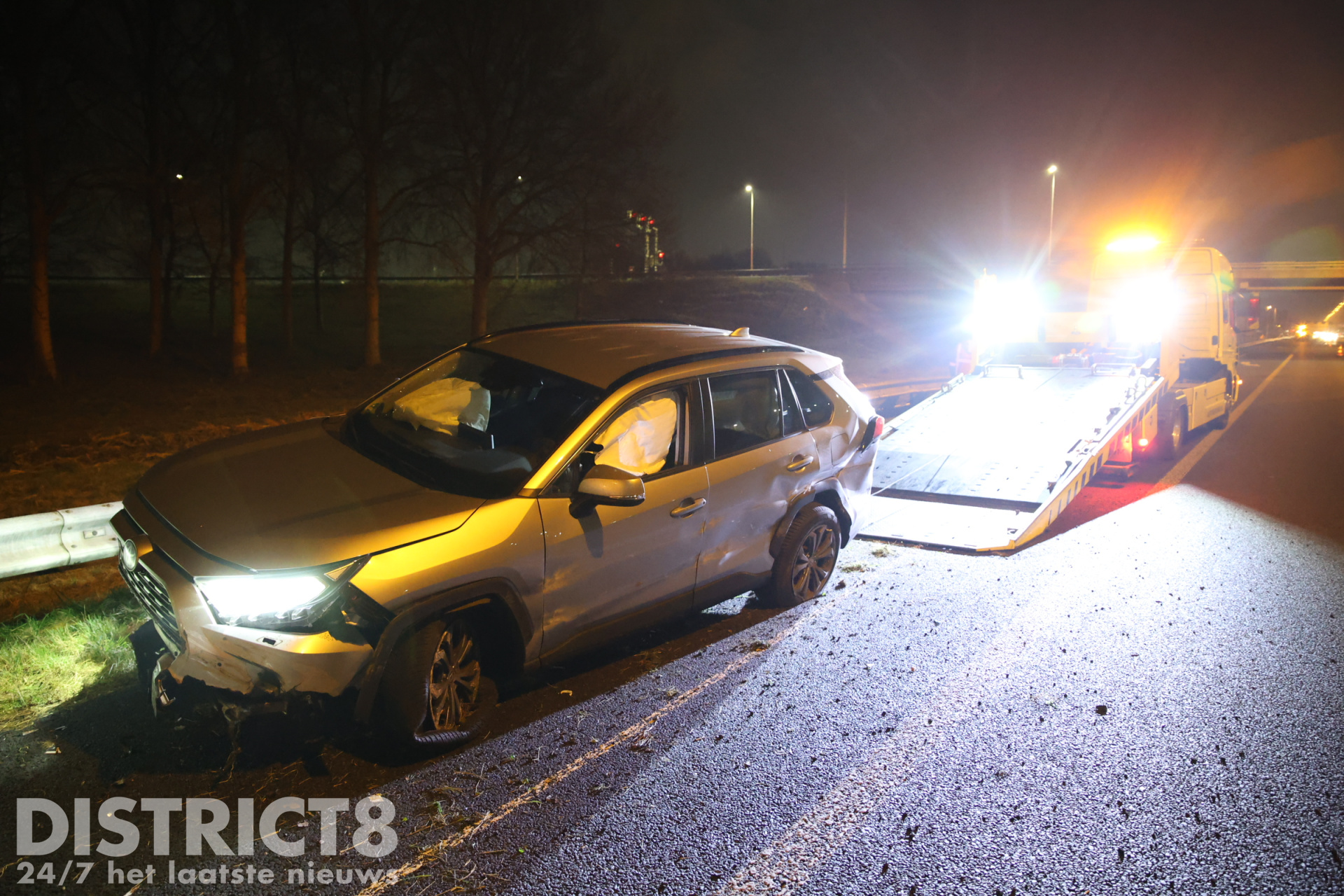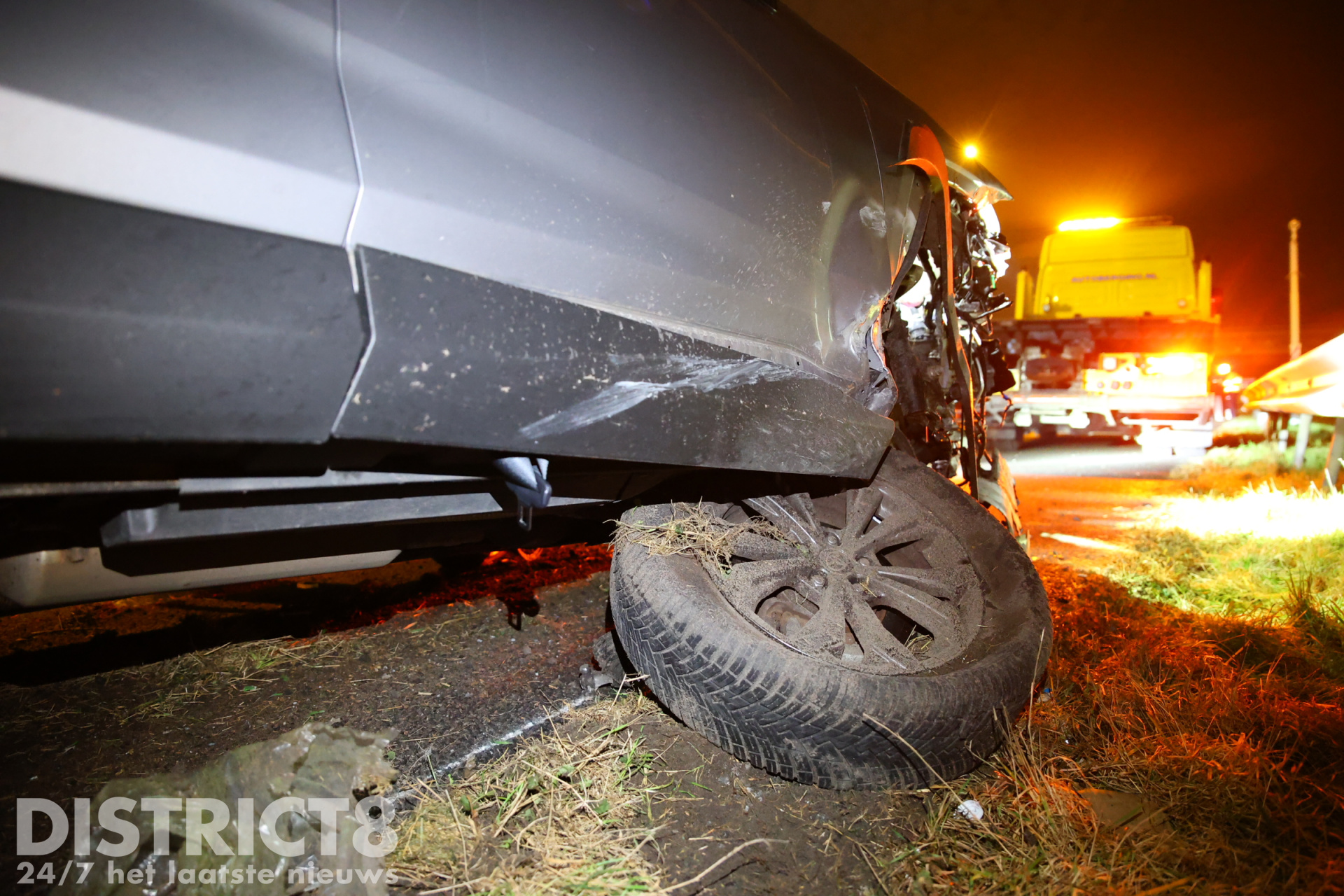De schade aan de vangrail en de wagen waren enorm, zo was van de auto het rechter voorwiel afgebroken en waren van de vangrail over enkele meters de palen waarop de vangrail staat afgebroken. Een berger heeft uiteindelijk de zwaar beschadigde auto afgevoerd, een aannemer gaat vannacht aan de slag om de schade aan beide kanten van de vangrail te herstellen.