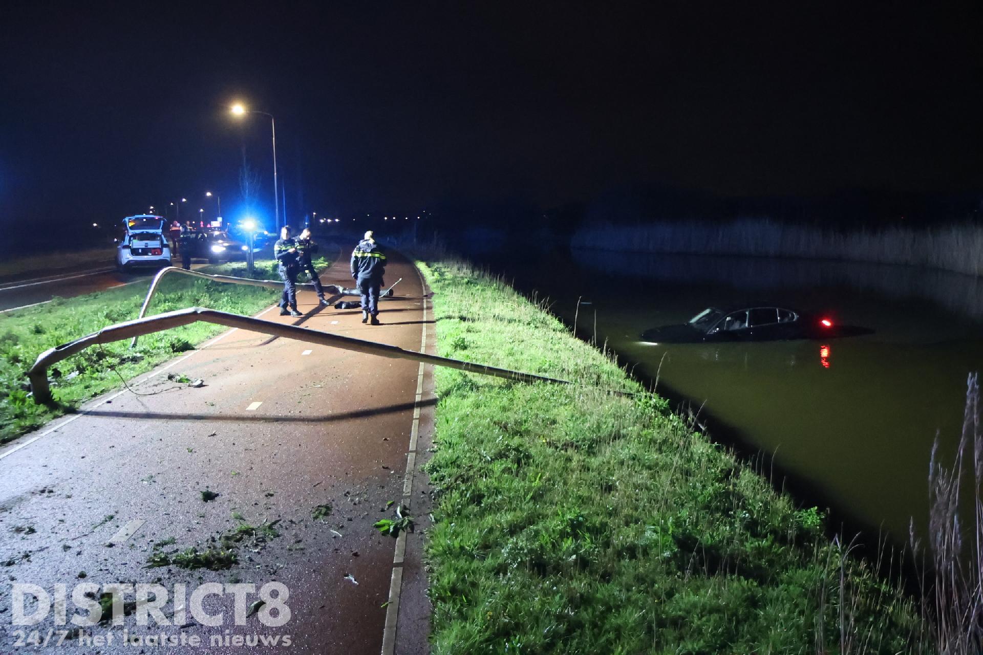 Omstreeks 23:40 uur verloor de automobilist door een nog onbekende oorzaak de controle over het stuur. Als gevolg van de aanrijding sneuvelden ook twee lichtmasten en kwam de personenauto tot stilstand in het water.