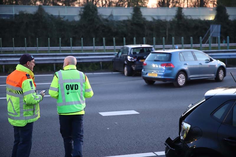 Delft – Op de A13 ter hoogte van Delft heeft vrijdagavond 16 april een aanrijding plaatsgevonden tussen drie voertuigen.