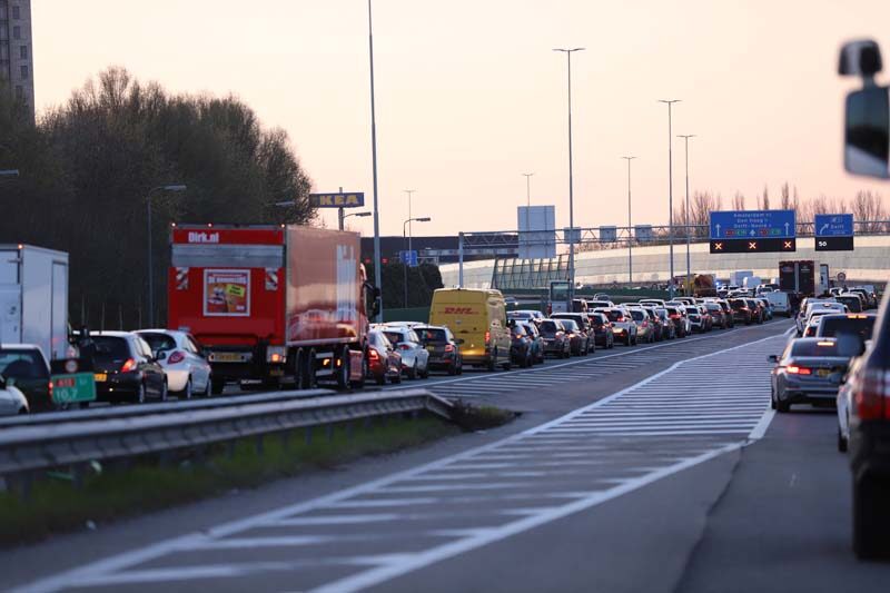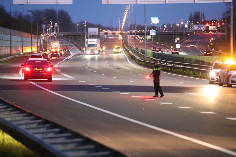 De A13 vanaf Delft richting Den Haag is afgesloten voor verkeer, bestuurders die in de file stonden worden van de snelweg af gehaald en moeten omkeren richting de N470.