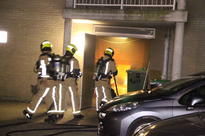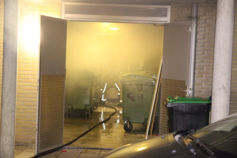 In de berging stond een container in brand. De brandweer had het vuur snel geblust.