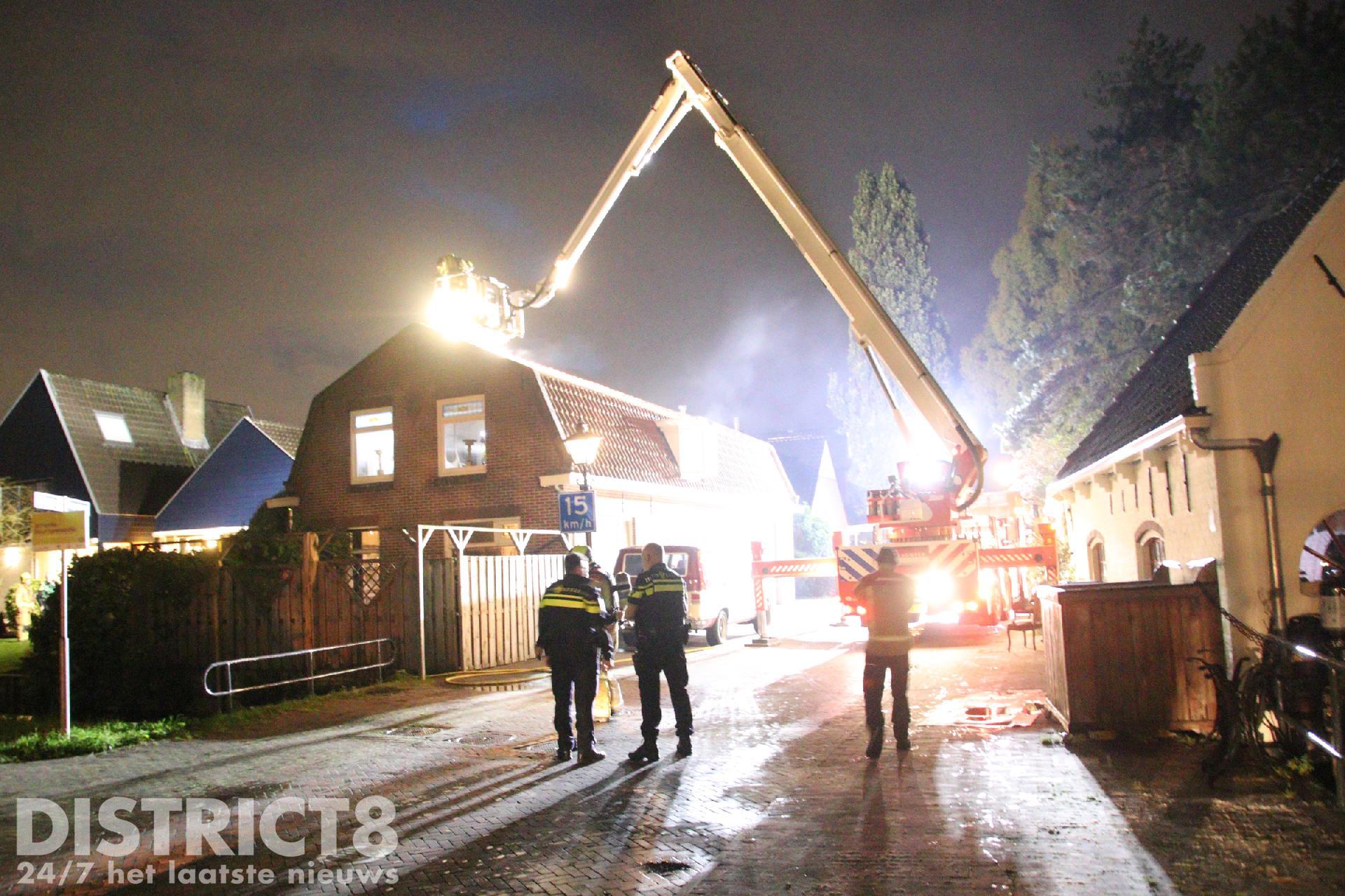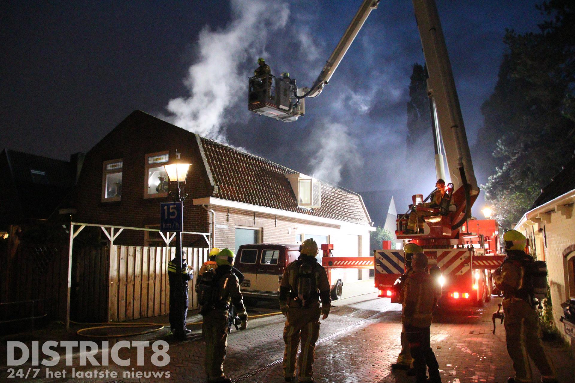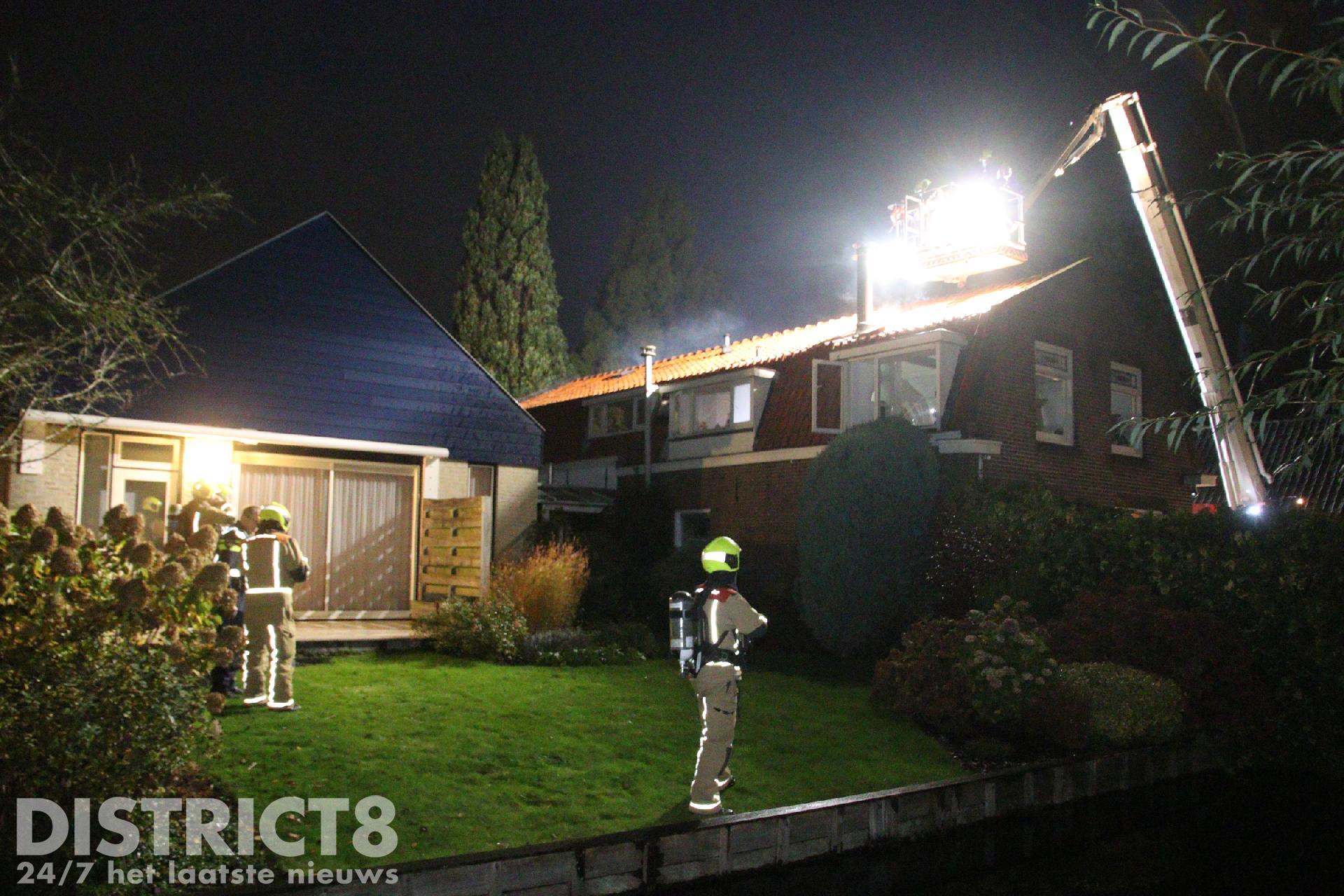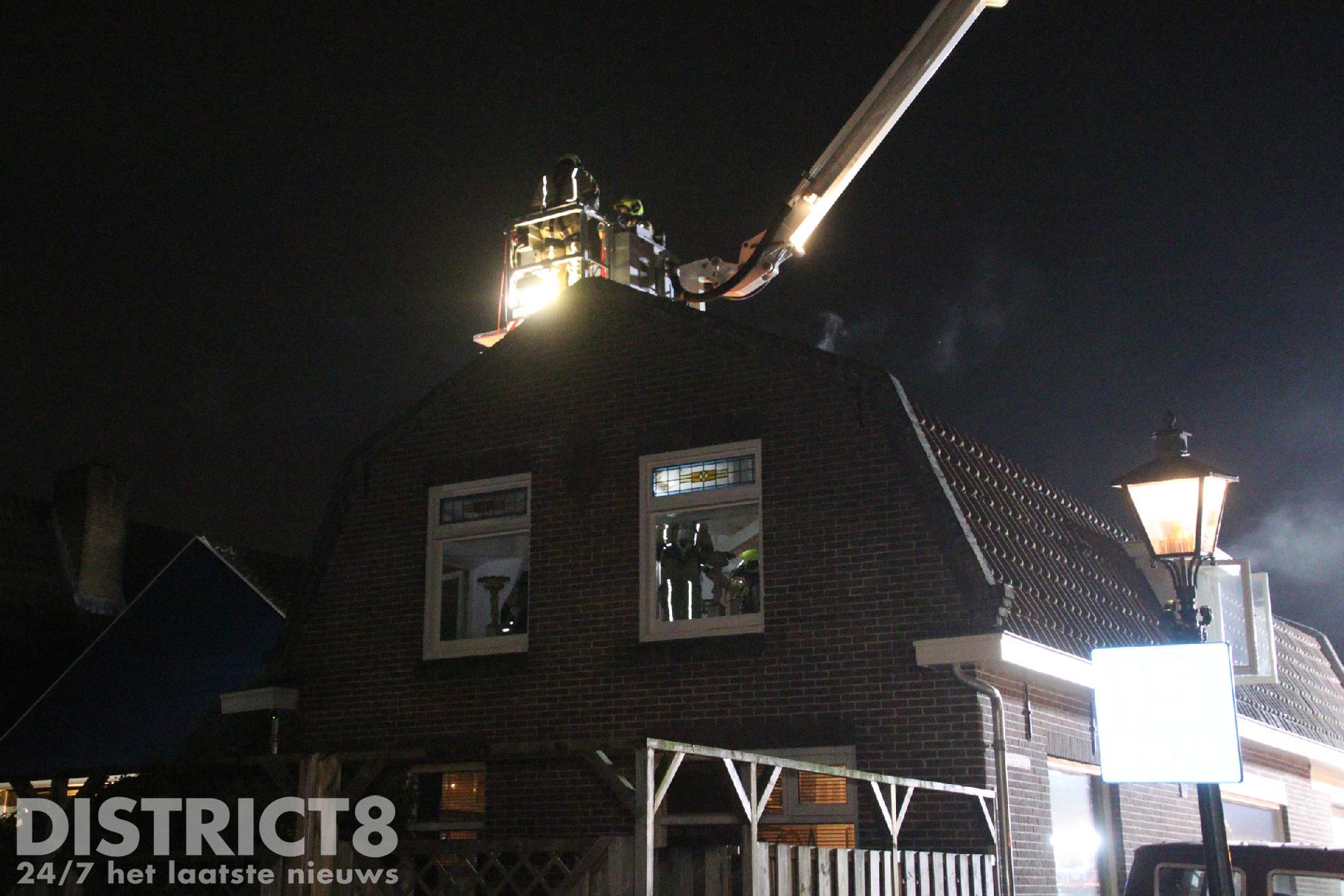 De brand woedde in de dakisolatie van de woning. De brandweerlieden hebben een gat in het dak gemaakt om bij de brandhaard te kunnen komen.
