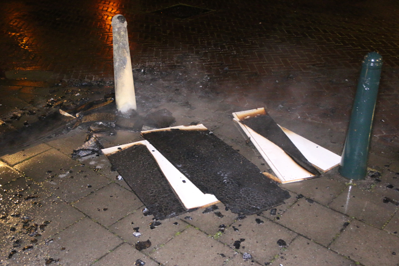 De brandweer was gelukkig snel ter plaatse en bluste het vuurtje. Tijdens het blussen kwam er veel rook vrij. De politie heeft bij een aantal bewoners navraag gedaan of zij iets gezien hebben van de brandstichting.