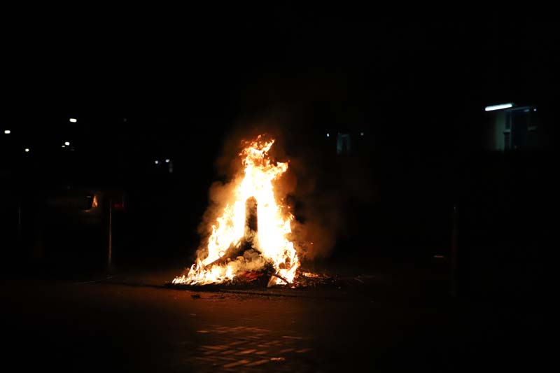 Een stapel afval werd tegen een hagenaartje in brand gestoken. Omwonenden merkten het brandje op en waarschuwden de brandweer.