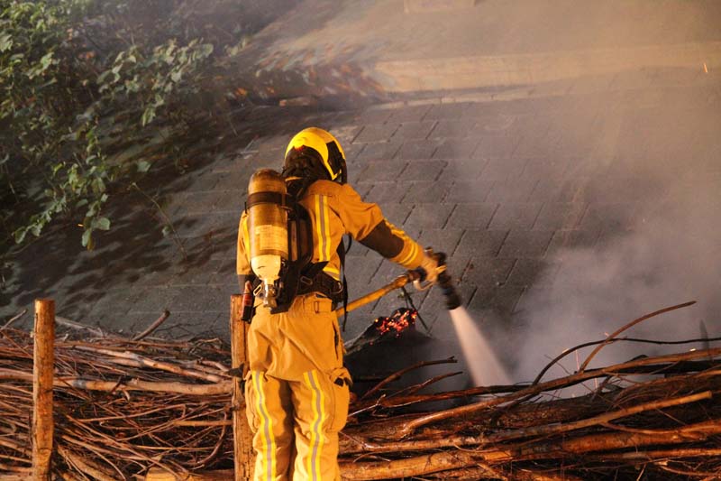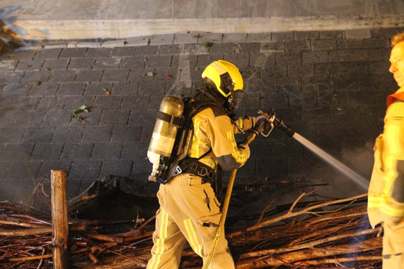 Toen de brandweer ter plaatse kwam waren er enkele kleine vlammetjes zichtbaar. De brandweer heeft het overige vuur geblust en heeft de rest van de takken natgespoten.