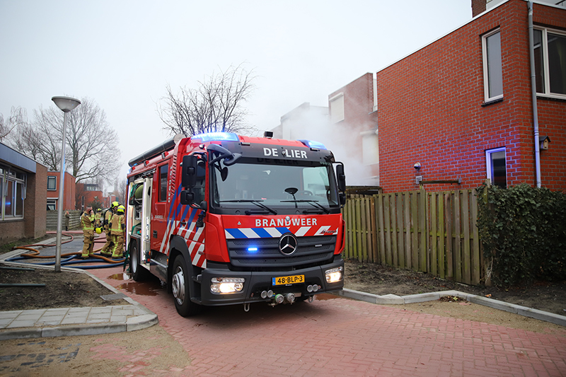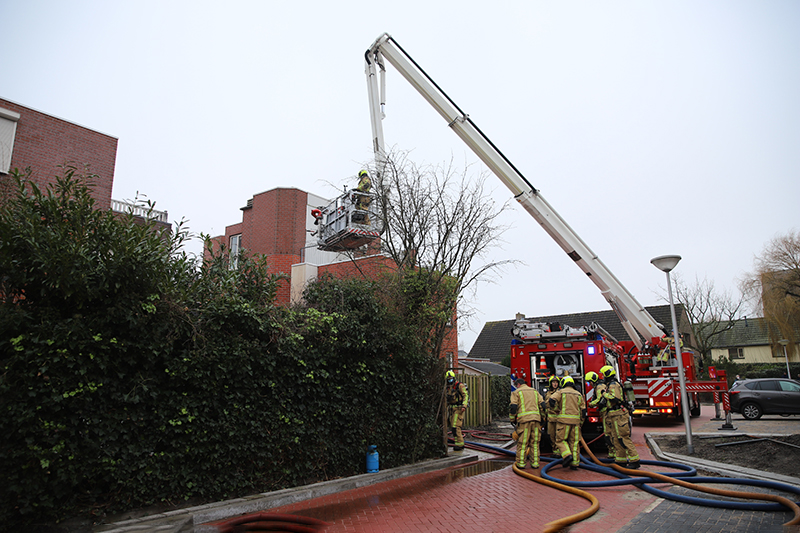 De woning raakte door de brand flink beschadigd. De brandweer is de woning aan het ventileren. De brand sloeg gelukkig niet de woning in.