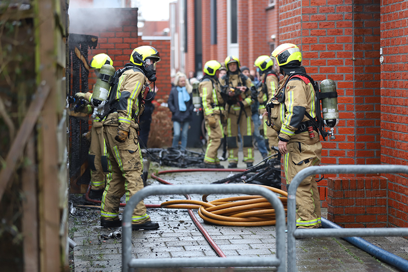 De woordvoerder van de brandweer liet weten dat de brand woedde in een schuurtje. De brand was zo hevig dat de kans groot was dat deze oversloeg naar de woning. Omdat deze kans groot was en er gasflessen in de schuur stonden werd er opgeschaald.