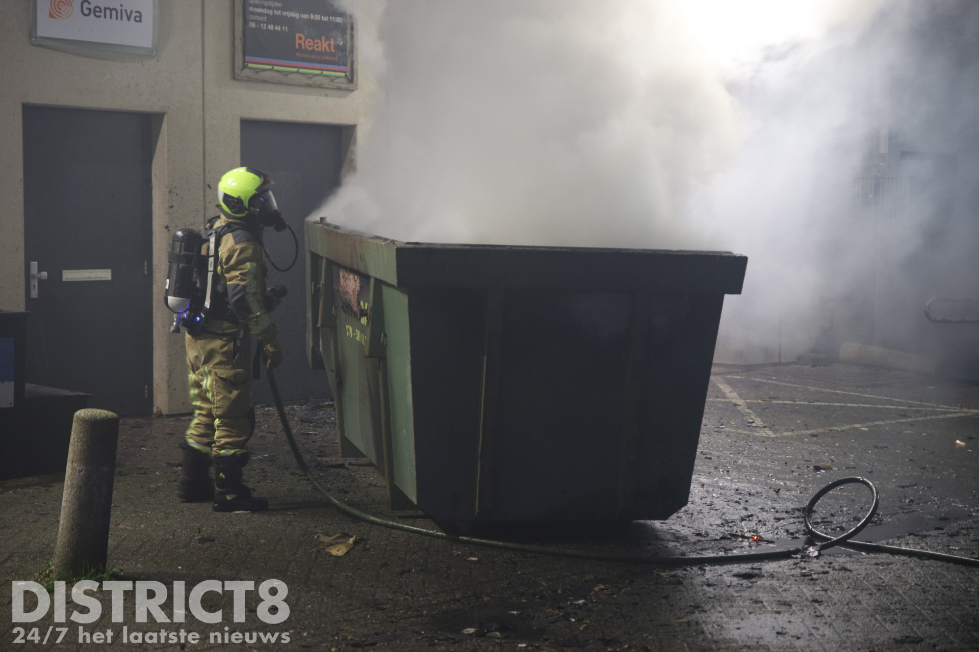 De brandweer was snel ter plaatse en wist te voorkomen dat het vuur naar het pand oversloeg. Wel raakte een deel van de gevel beschadigd door de hitte van de brand.