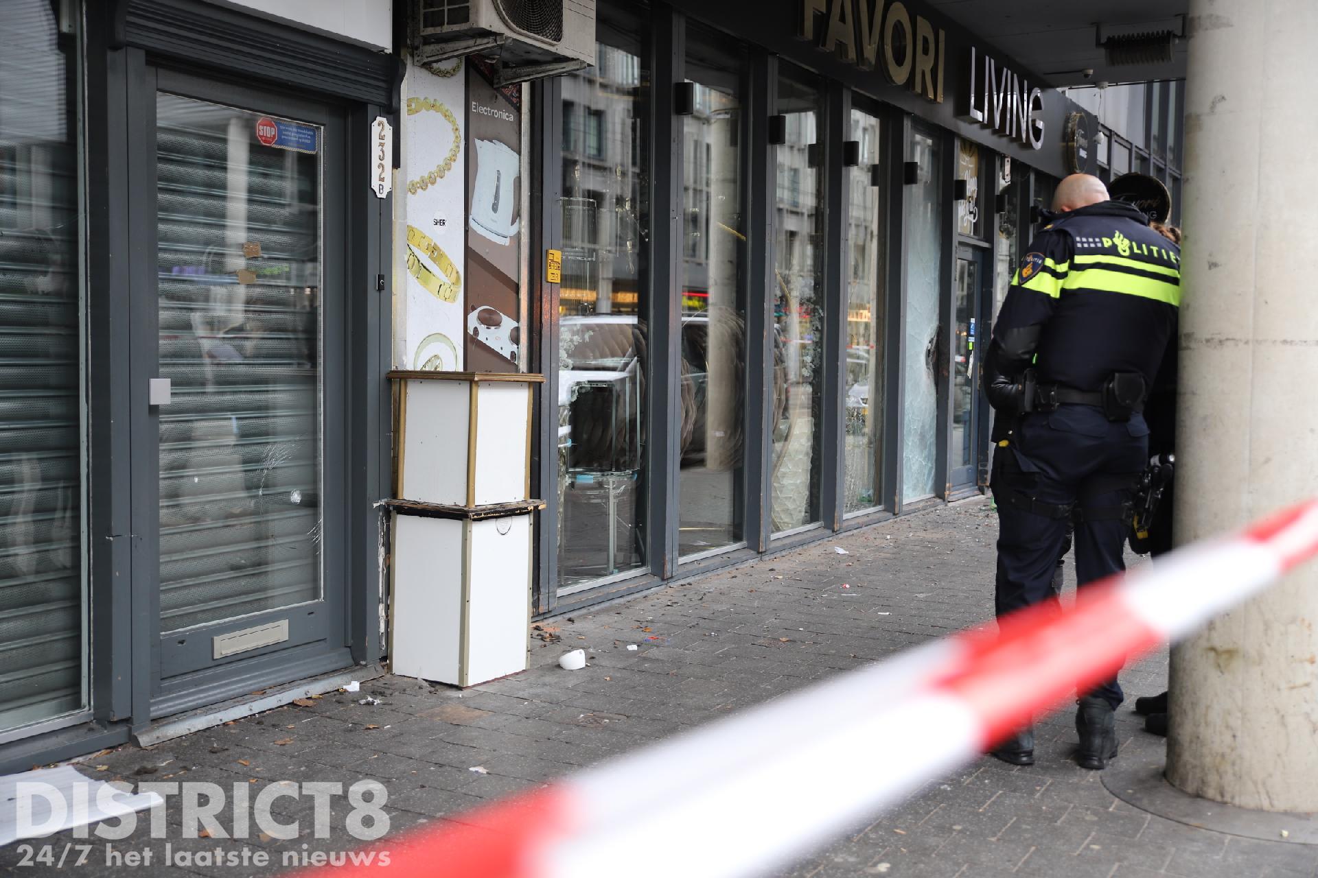 Terwijl de politie bezig was met het onderzoek naar de explosie op het Hobbemaplein werd er even verderop een zwaar beschadigde ruit van een winkel aangetroffen. De schade is hoogstwaarschijnlijk ontstaan door zwaar vuurwerk.