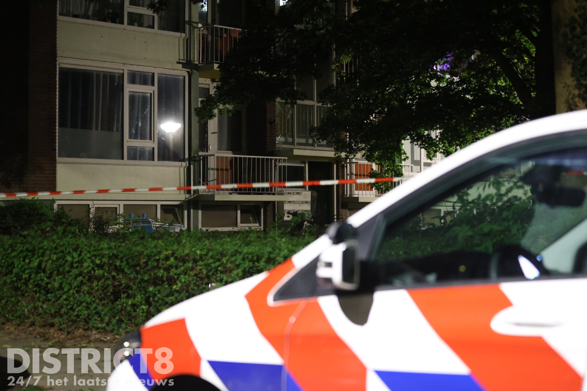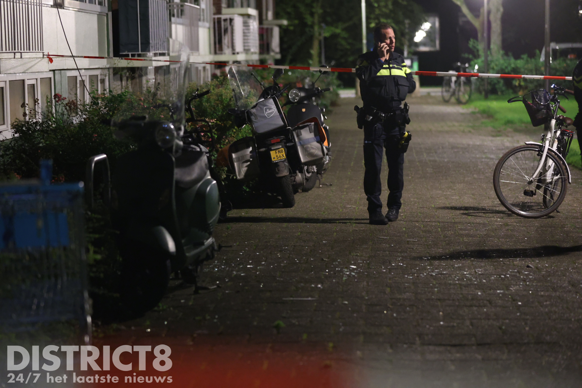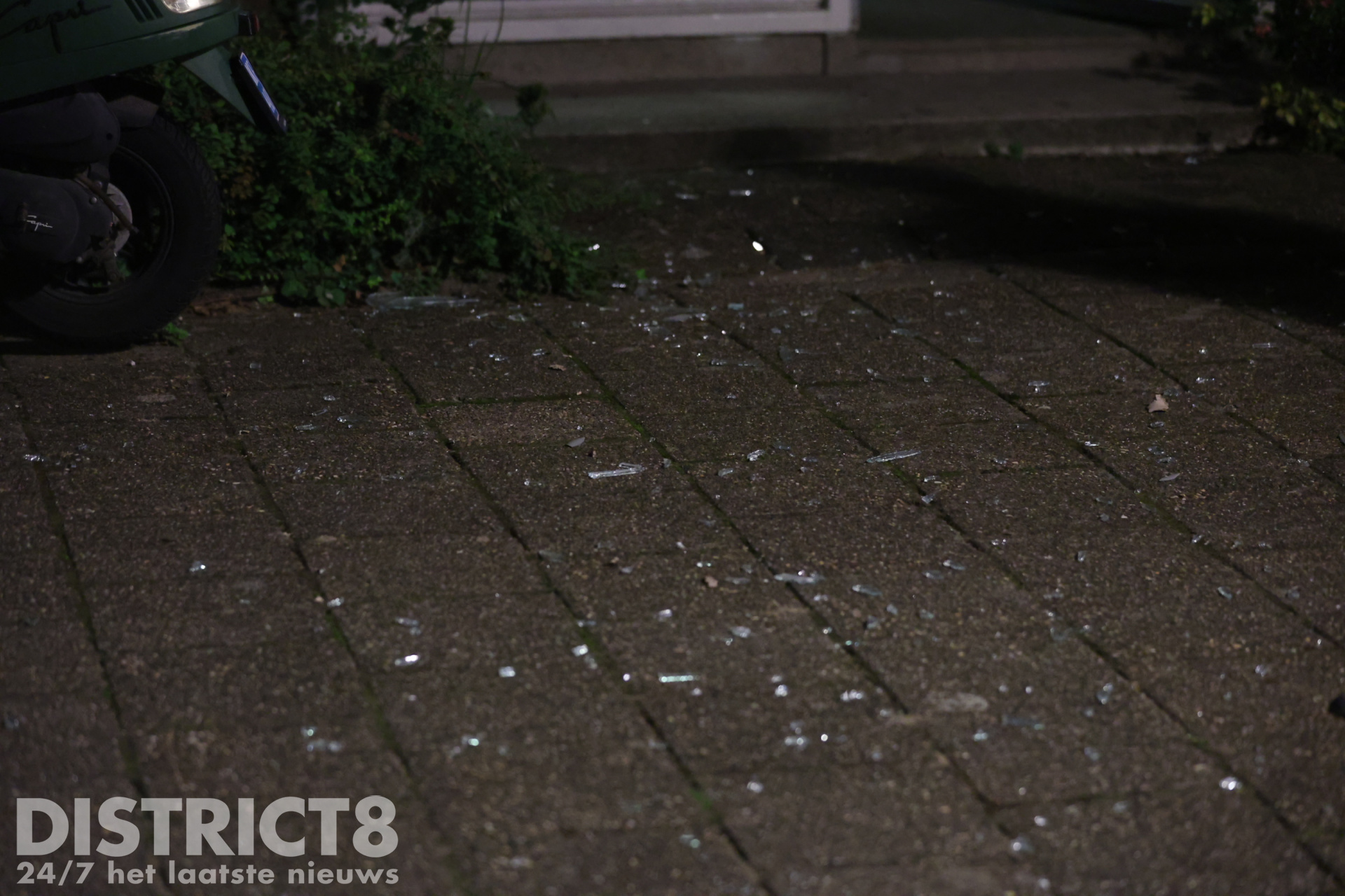 Bij een woning op de begane grond bleek een explosie te zijn geweest die flinke schade aanrichtte aan het kozijn van het balkon. Ook een raam van het portiek sneuvelde door de explosie.
