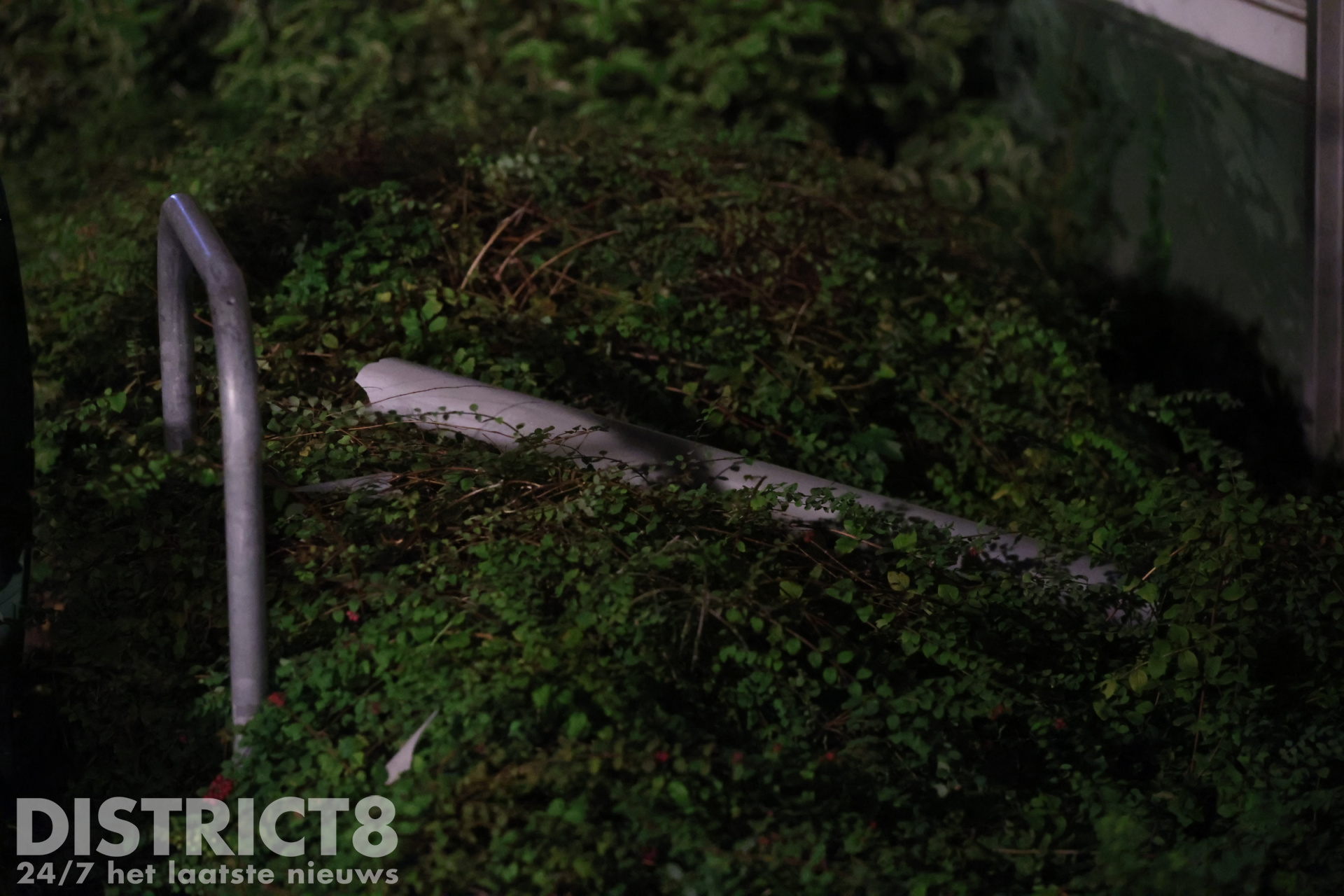 De politie heeft ter plaatse een plaats delict (PD) gemaakt, op de stoep voor de portiek liggen onder andere glasscherven en stukken van een regenpijp die door de explosie zijn gesneuveld.
