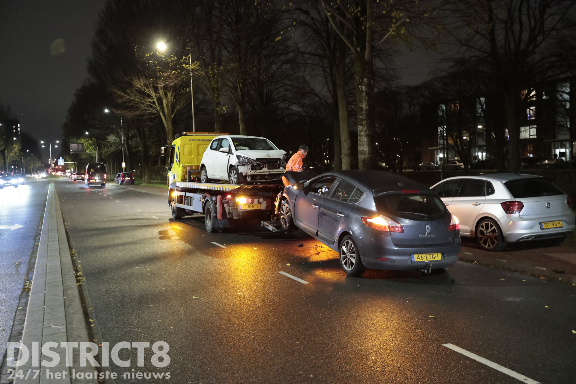 Beide voertuigen zijn door een berger afgesleept.