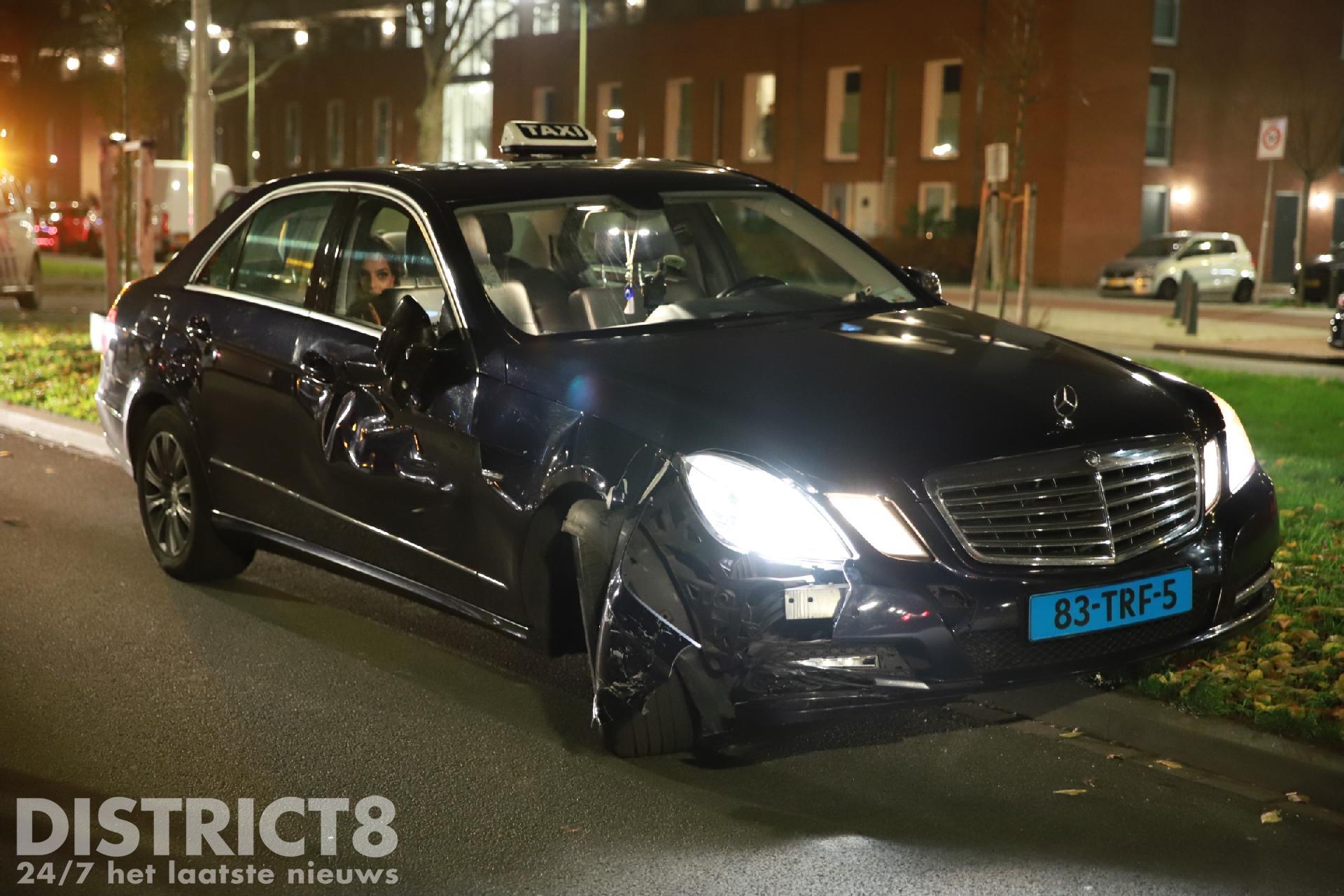 Beide voertuigen raakten flink beschadigd. De taxi zal worden opgehaald door een berger.