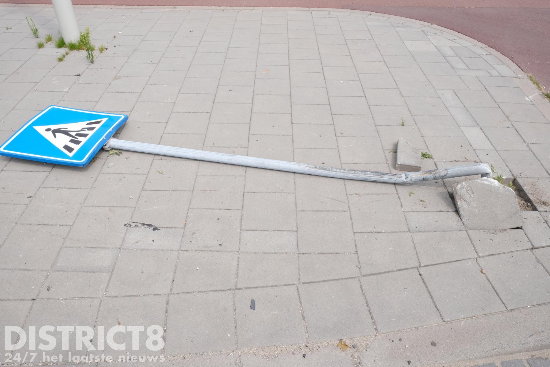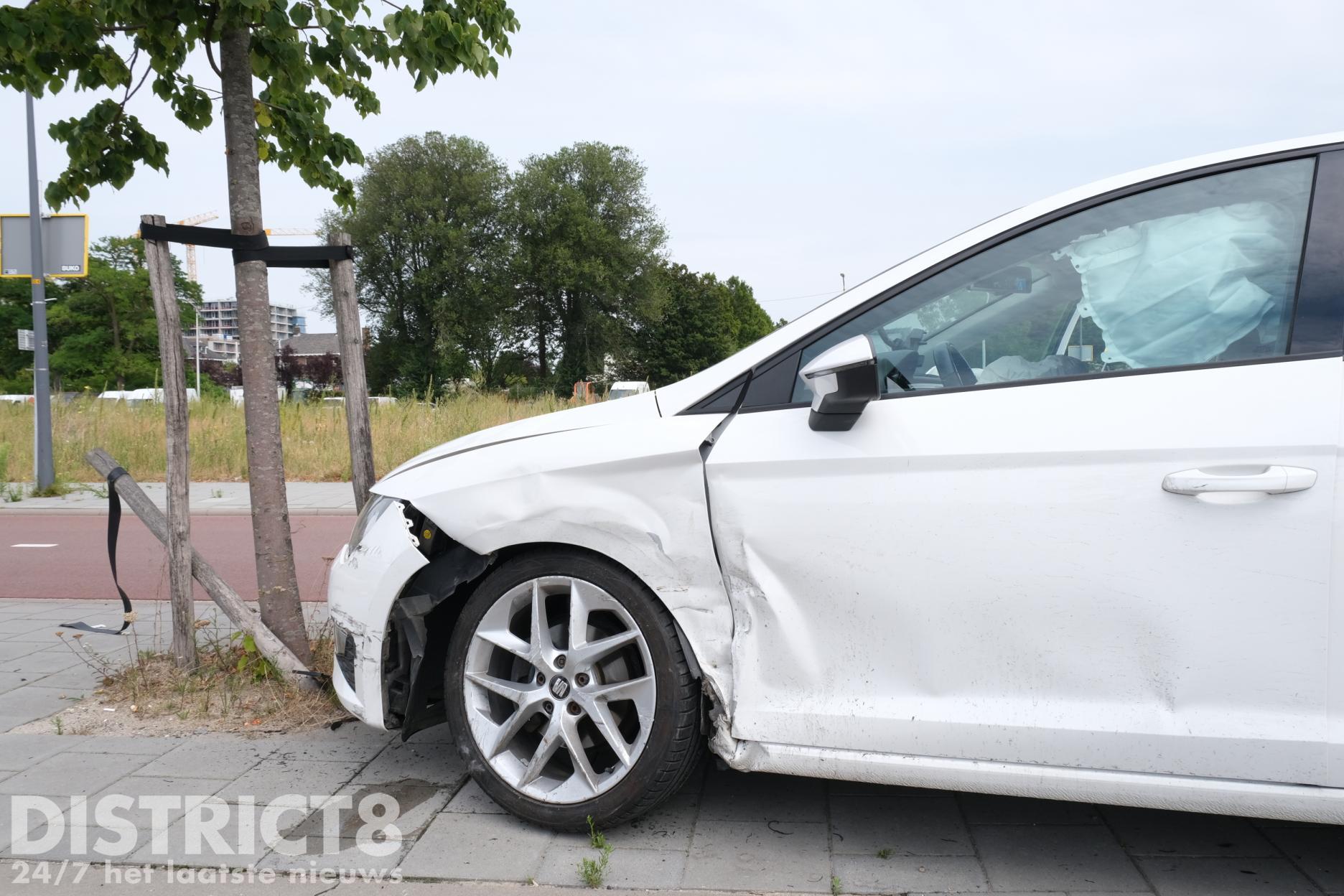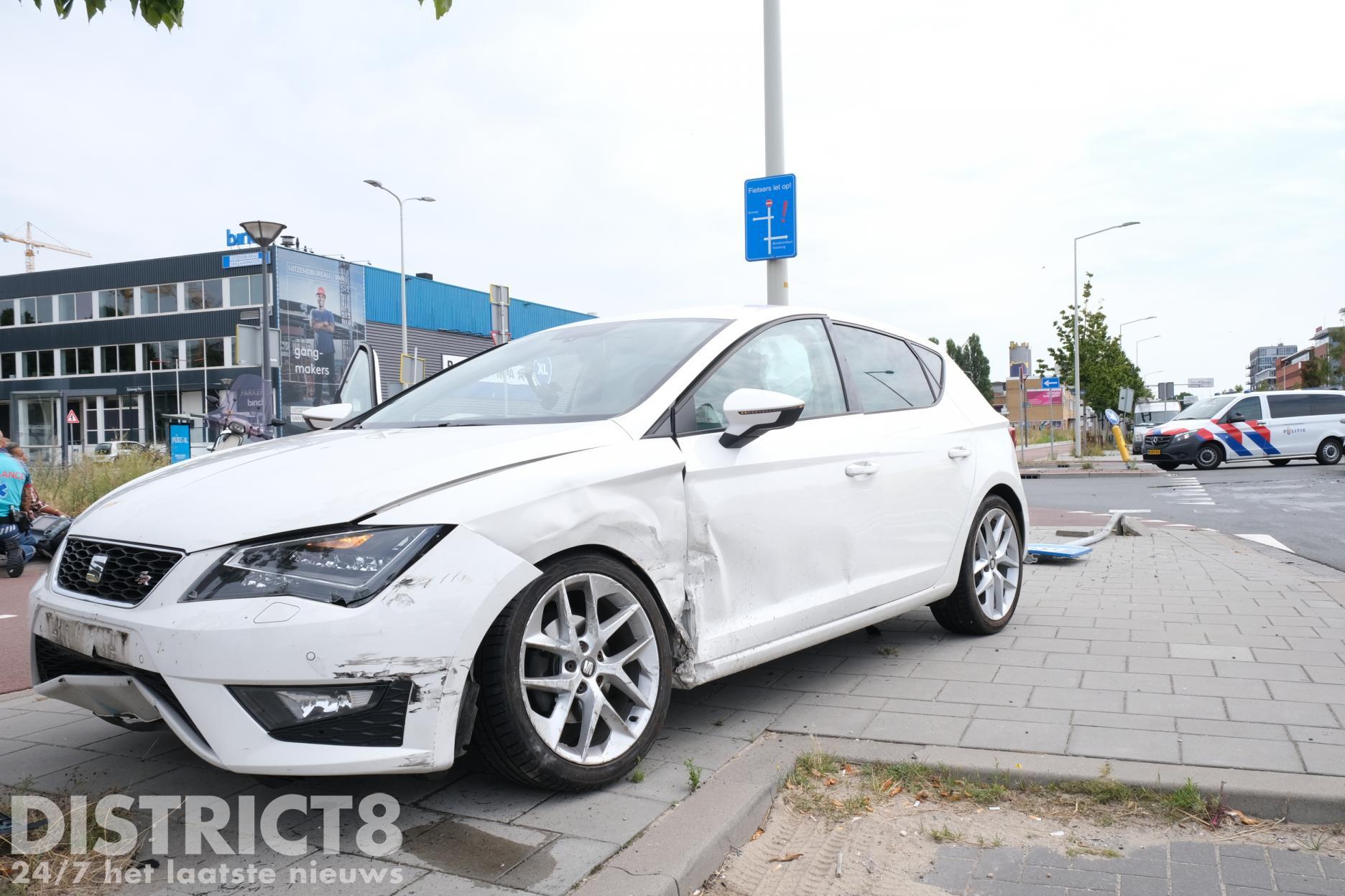 De twee auto’s kwamen op de kruising met elkaar in botsing, één van de auto’s schoot door en reed een paal uit de grond.
