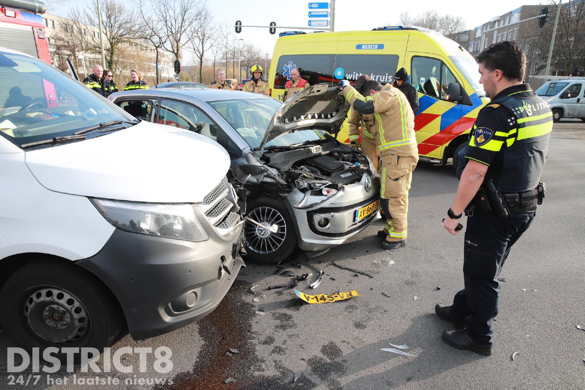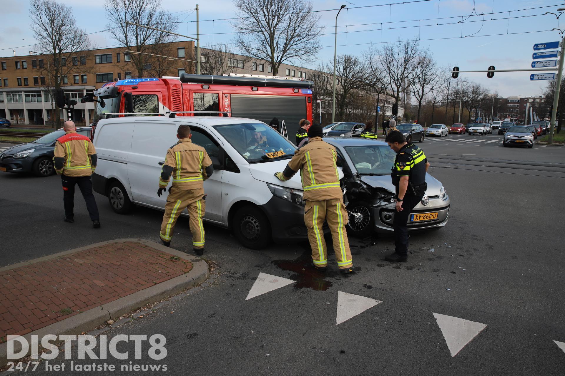 Den Haag – Op de kruising van de Oude Haagweg met de Groen van Prinstererlaan heeft vrijdagmiddag 10 februari een aanrijding plaatsgevonden tussen een auto en een busje. Na de aanrijding werd direct 112 gebeld.