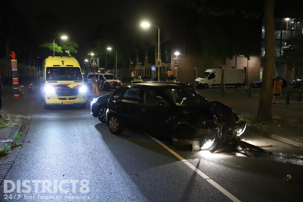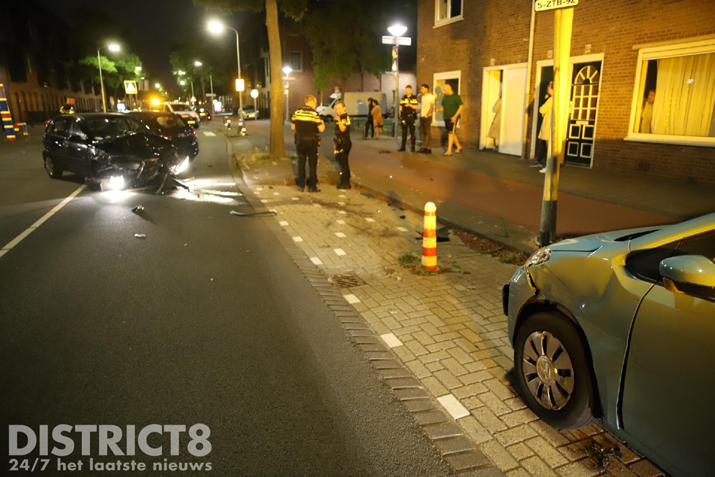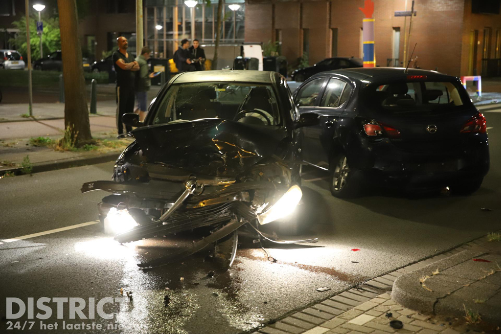 Een automobilist kwam vanaf Rijswijk en vloog uit de bocht. De twee geparkeerde auto’s en de auto van de bestuurder raakten flink beschadigd.