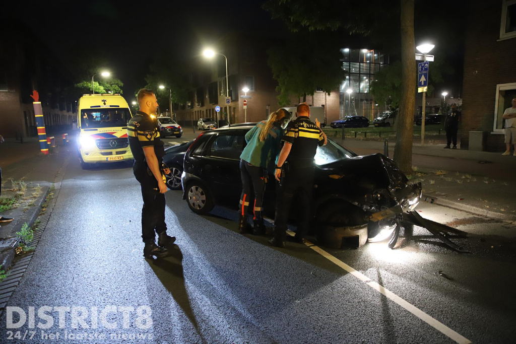 De bestuurder raakte bij de aanrijding gewond en werd per ambulance overgebracht naar het ziekenhuis.