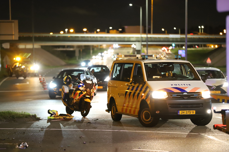 De afrit van de A4 naar de Laan van Delfvliet is afgesloten. Op het kruispunt liggen meerdere brokstukken.