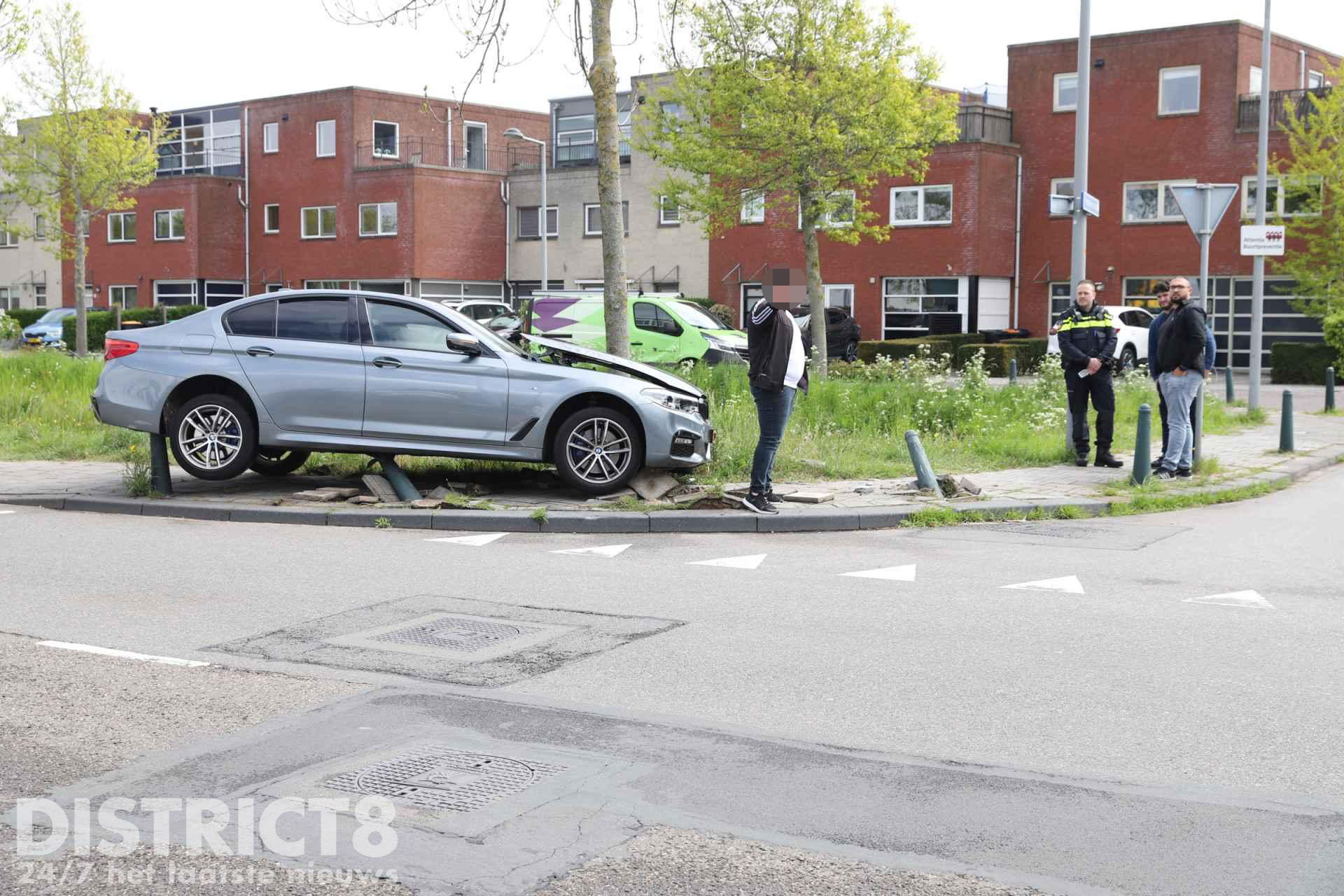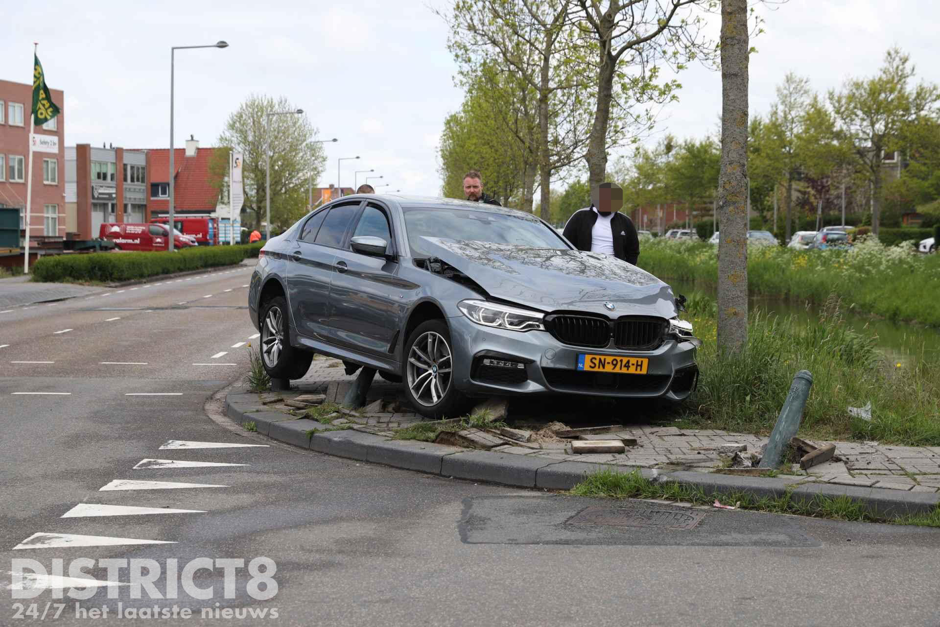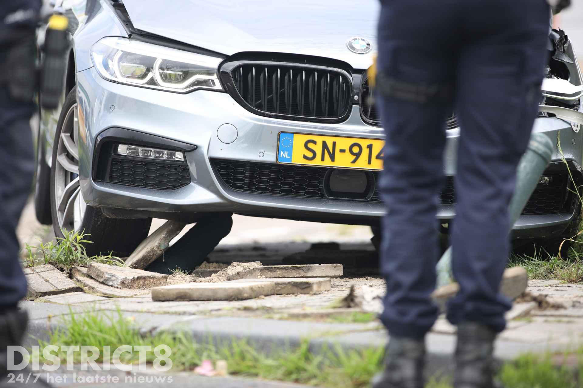 De auto liep flinke schade op. Gelukkig vielen er geen gewonden. De auto zal moeten worden afgesleept.