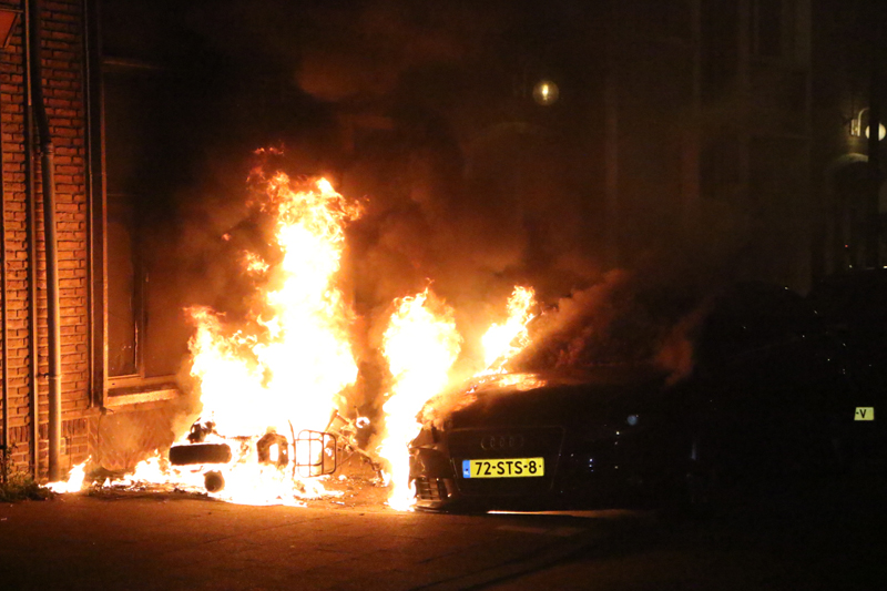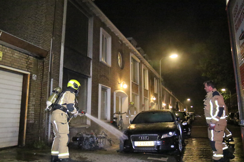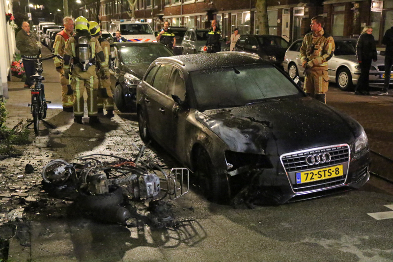 Den Haag – Aan de Maarsbergenstraat in Den Haag is in de nacht van zaterdag op zondag 24 mei een scooter in brand gestoken. De scooter stond in korte tijd volledig in brand. Een omwonende die de brand opmerkte twijfelde geen moment en trapte de scooter, die tegen de gevel van een woning stond, om.