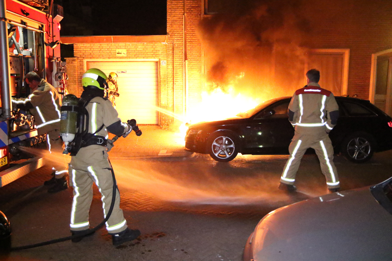 De brandweer kwam met spoed ter plaatse om de felle brand en de metershoge vlammen te doven.