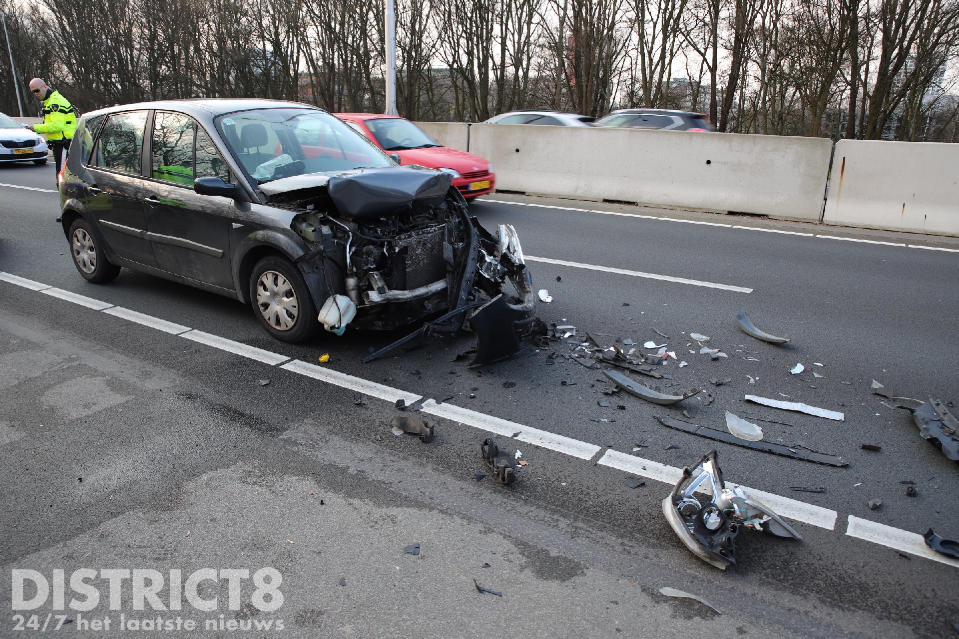 Door de aanrijding is er een flinke file ontstaan. De berger zal de voertuigen afslepen.