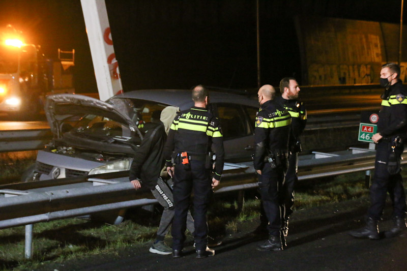 Omstreeks 02:00 uur ’s nachts kregen de hulpdiensten een melding van een aanrijding op de A4 ter hoogte van het Prins Clausplein. Toen zij ter plaatse kwamen bleek dat de bestuurder van het voertuig eerst een lantaarnpaal omver heeft gereden waarna hij tussen de twee geleiderails (in de volksmond ‘vangrail’, red.) terecht is gekomen.