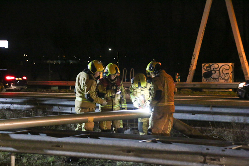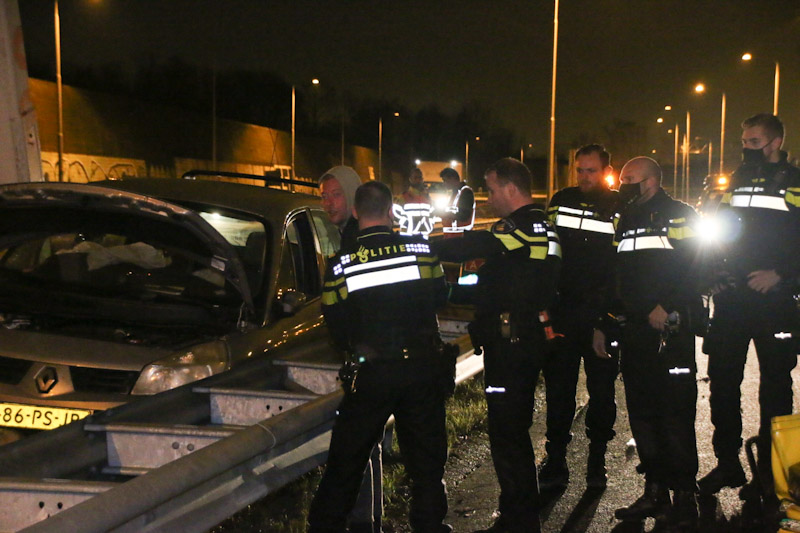 Den Haag – Bij een aanrijding op de A4 bij Den Haag is in de nacht van vrijdag op zaterdag een auto tussen twee geleiderails terecht gekomen.