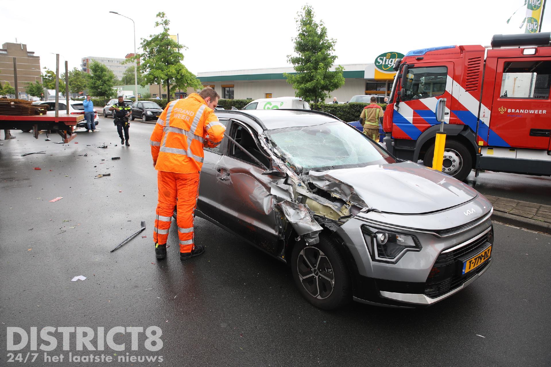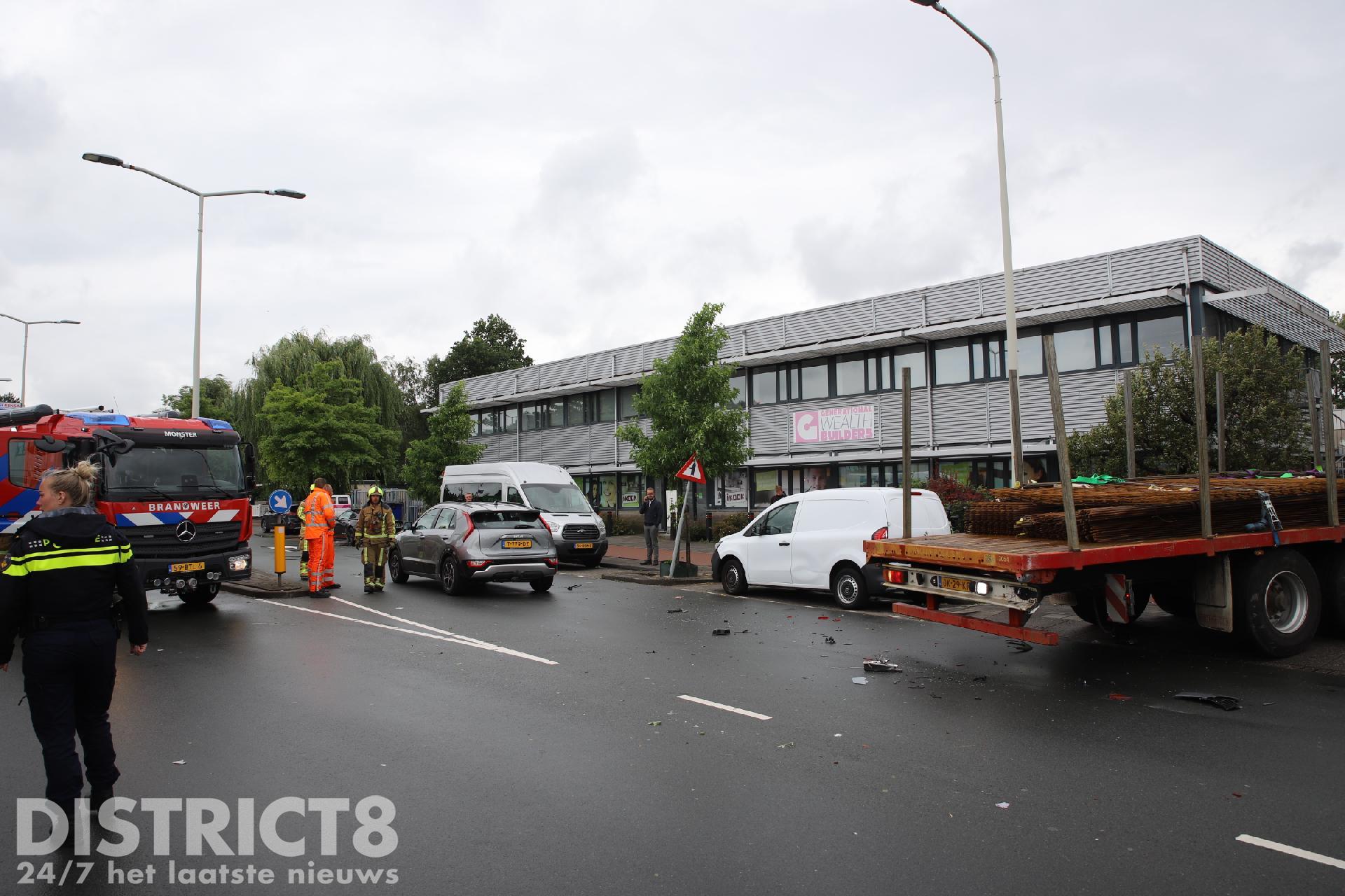 Flinke schade na botsing tussen auto en vrachtwagen Zichtenburglaan Den Haag
