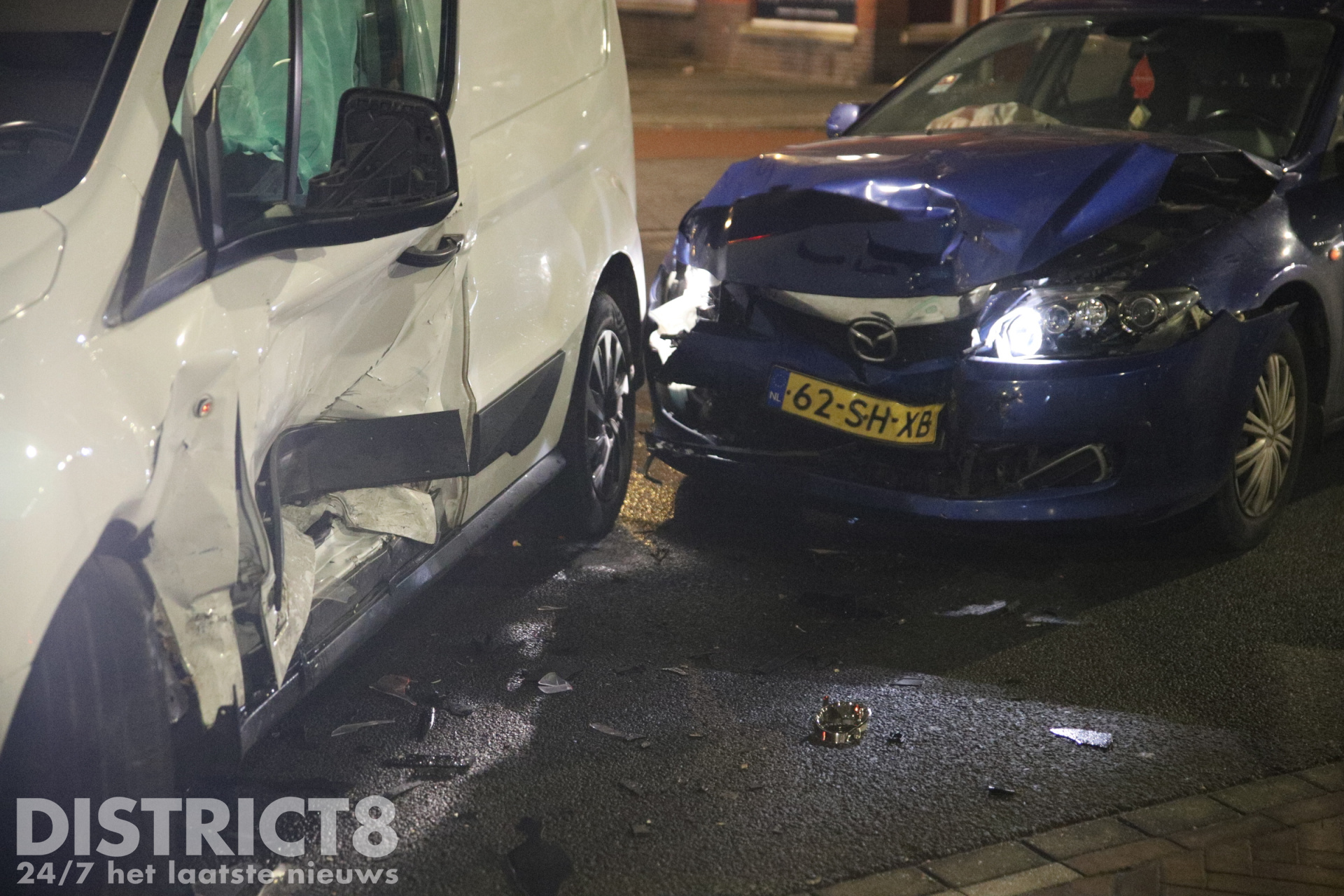De ambulancedienst kwam ter plaatse voor de bestuurder van de bestelauto. Hij liep enkele verwondingen op, maar verdere behandeling in het ziekenhuis bleek niet nodig.