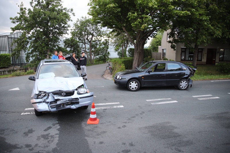 Poeldijk – Twee personenauto’s hebben vrijdagavond 5 juni flinke schade opgelopen bij een aanrijding op de Wateringseweg in Poeldijk.