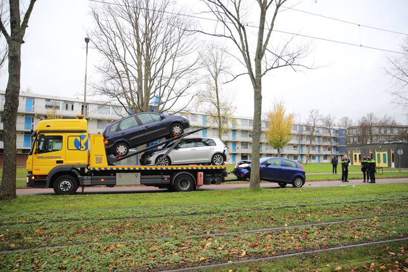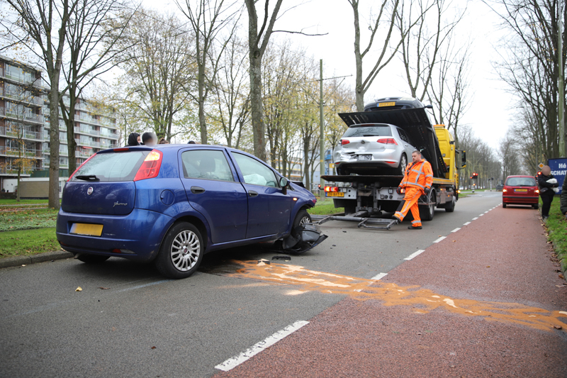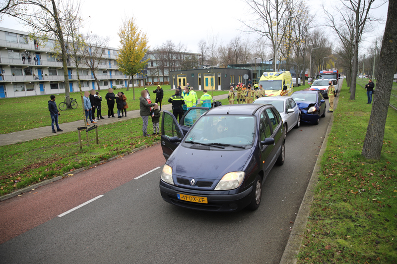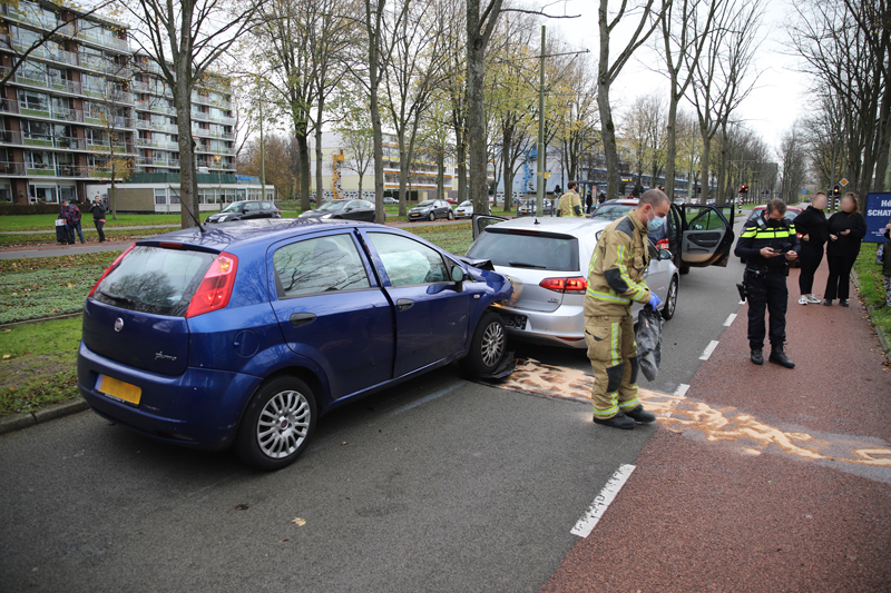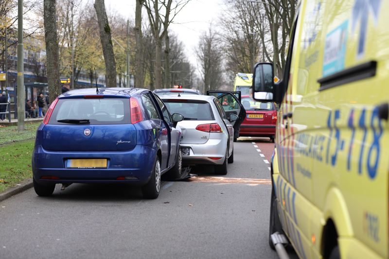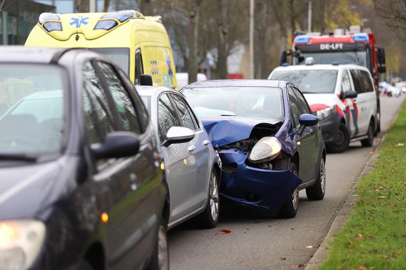 Delft – Op de kruising van de Buitenhofdreef en de Van der Slootsingel in Delft heeft zaterdagmiddag 21 november een kop-staart aanrijding plaatsgevonden tussen drie voertuigen.