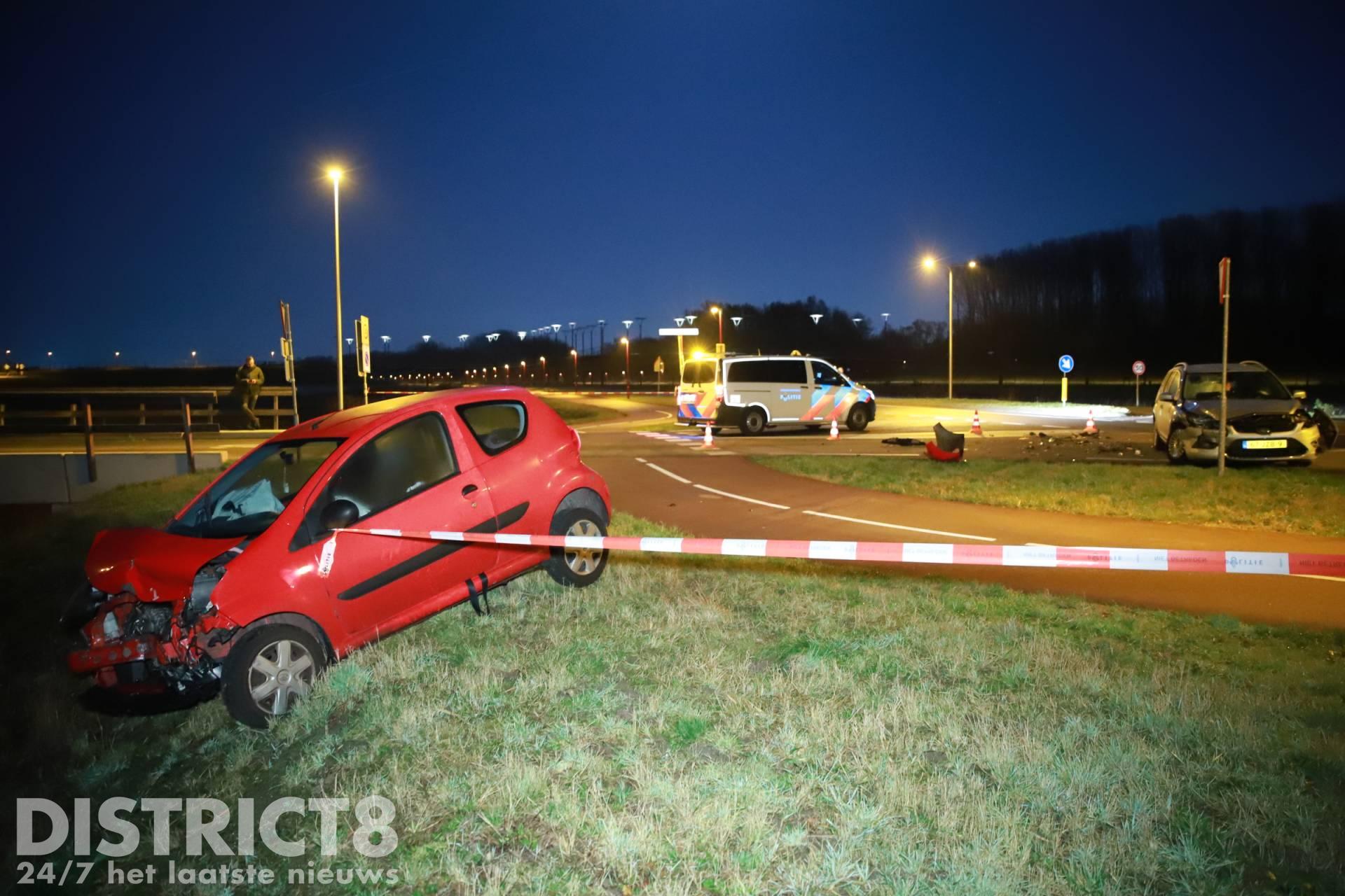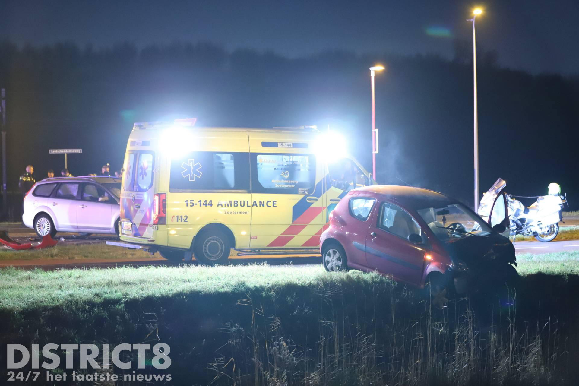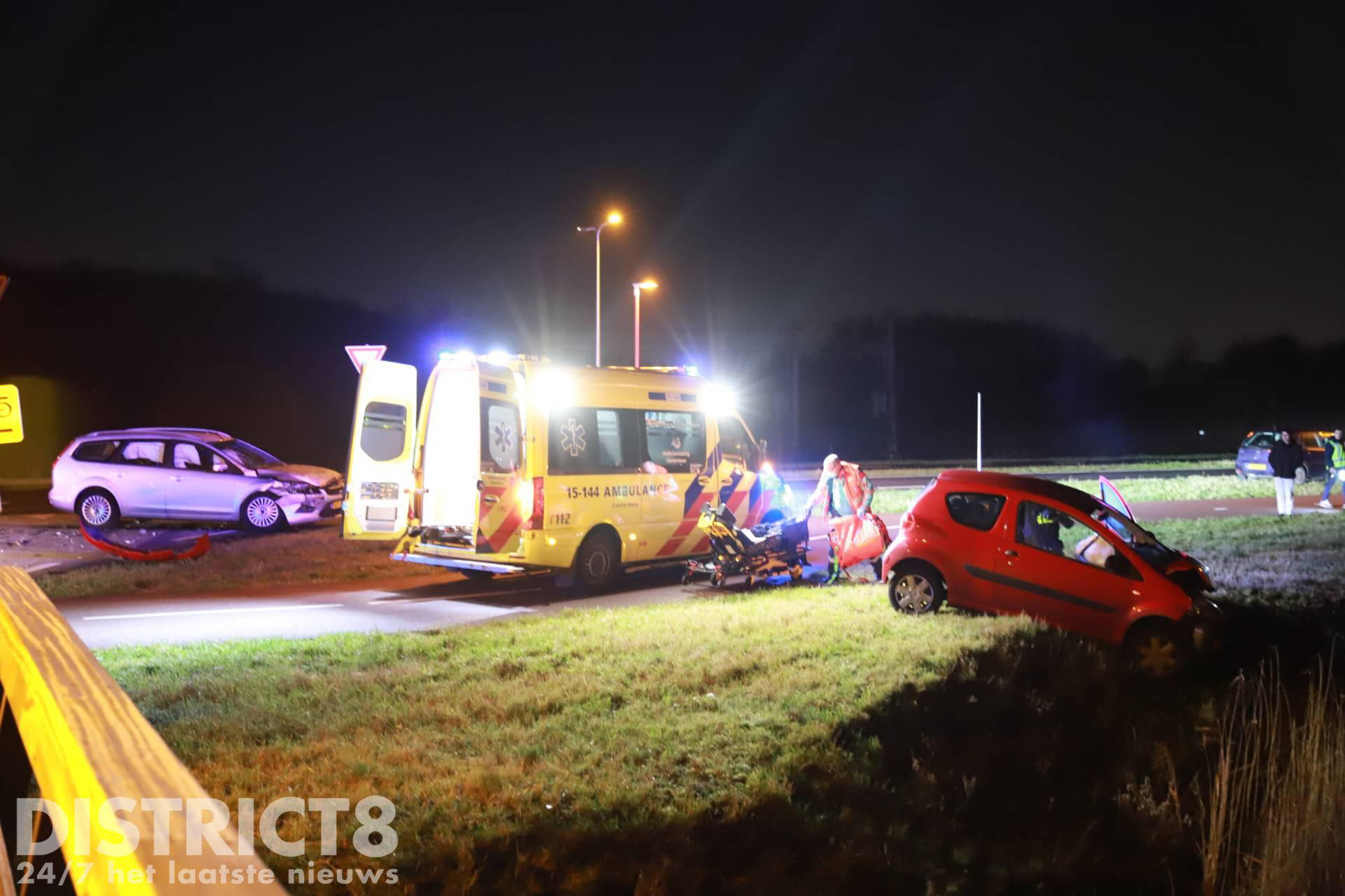 Ter plekke bleek dat er een flinke aanrijding had plaatsgevonden. Twee personen werden in de ambulance onderzocht.