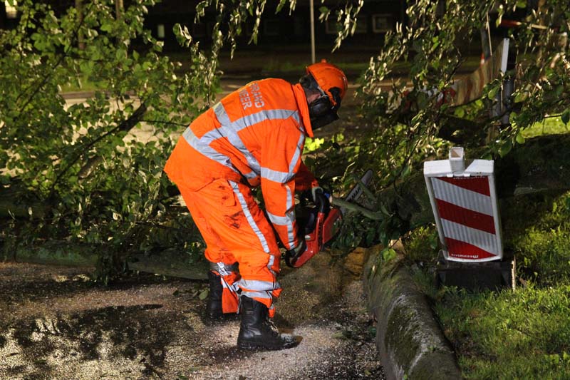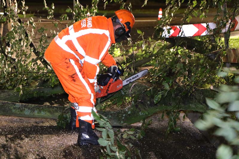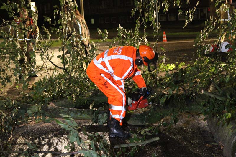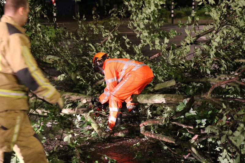 Omdat de stevige tak voor een groot gedeelte op de doorgaande weg lag werd de brandweer aangestuurd om de tak te verwijderen.