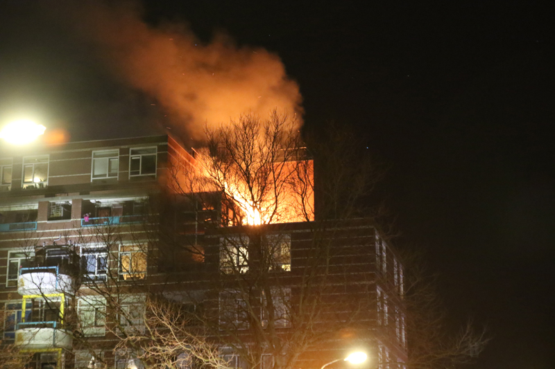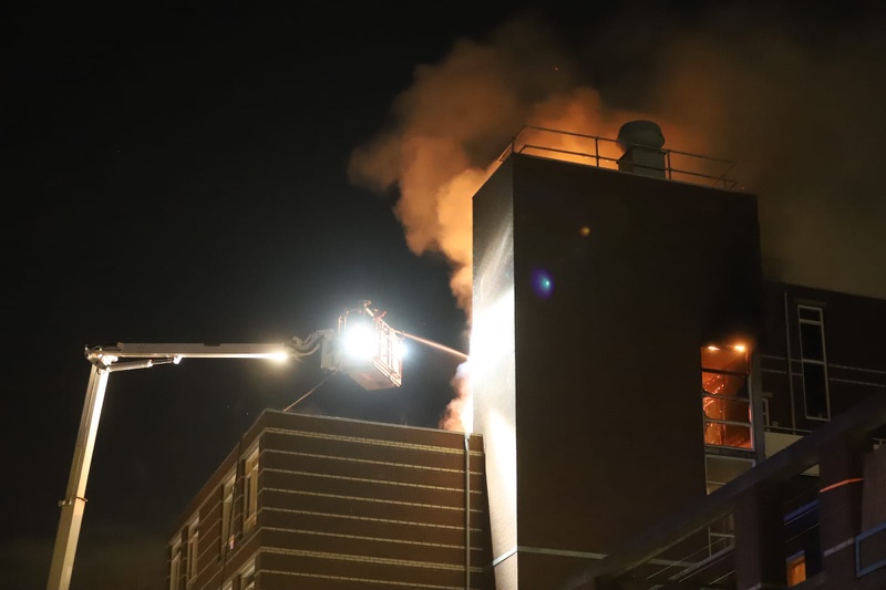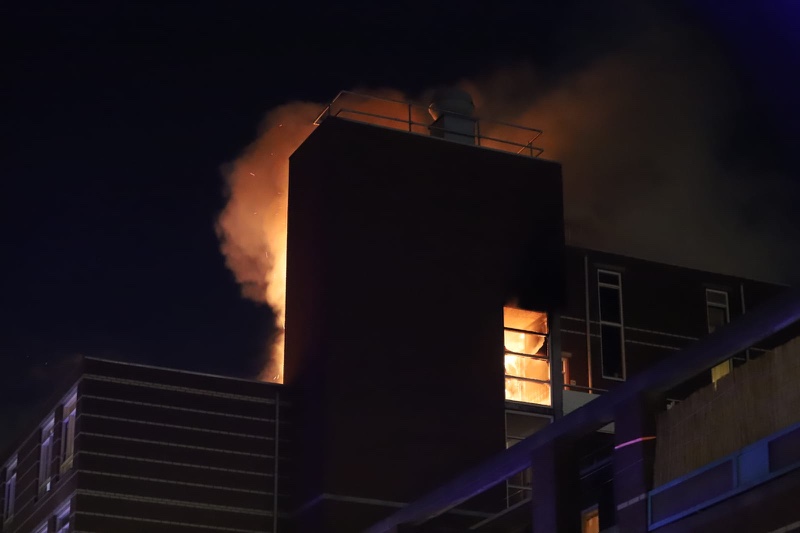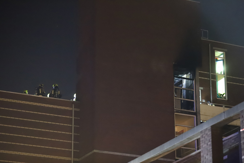 Rond middernacht werden de hulpdiensten gealarmeerd dat er brand woedde in het trapportaal van het complex. Inmiddels was er sprake van een uitslaande