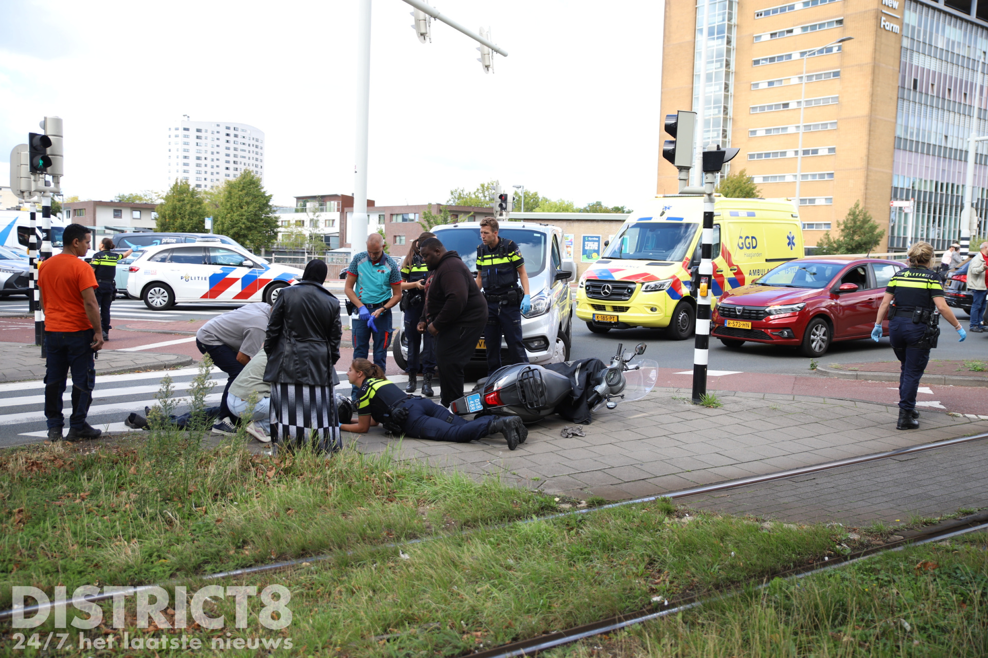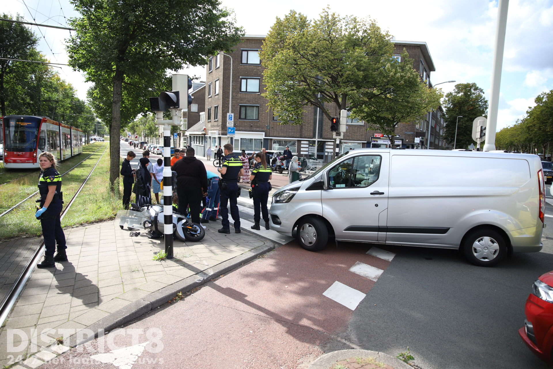 Den Haag – Op de kruising van de Melis Stokelaan met de Troelstrakade in Den Haag heeft vrijdagmiddag een ongeval plaatsgevonden tussen een busje en een scooter. Door de aanrijding kwam de scooterrijder hard ten val. Hij raakte zodanig gewond dat hij in een vacuümmatras moest worden geplaatst.