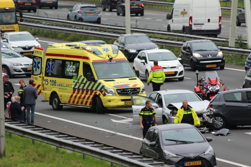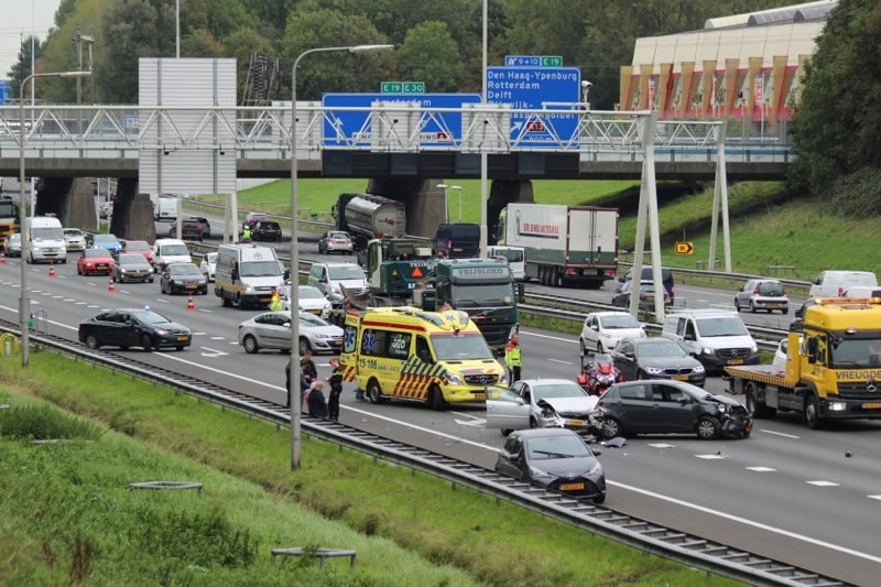 Rijswijk – Op de A4 richting Rotterdam heeft een flinke aanrijding plaats gevonden. Drie auto’s zijn hierbij betrokken. De hulpdiensten sloten een rijbaan en de uitvoegstrook van de afrit Prinses Beatrixlaan af. In de ambulance is iemand behandeld. Deze betrokkene is uiteindelijk vervoerd naar het ziekenhuis. Een andere betrokkene bleek niet vervoerd te worden. Berger Vreugdenhil is ter plaatse geweest en heeft beide voertuigen geborgen. Er stond volgens Rijkswaterstaat zo’n zes kilometer file achter het ongeluk.