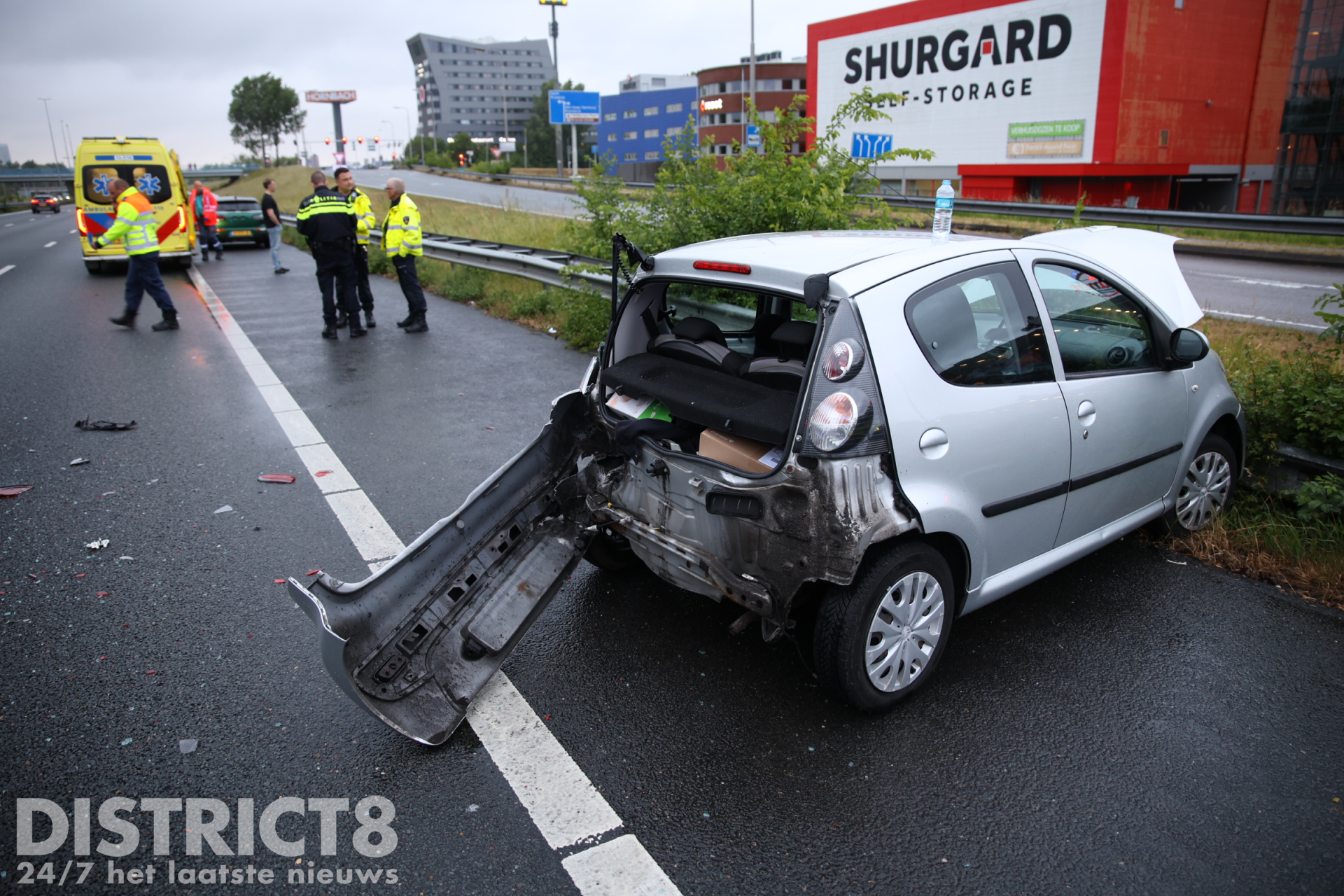 Delft – Op de A13 richting Den Haag, ter hoogte van hectometerpaaltje 7,5 bij afrit 8 Delft-Noord, heeft dinsdagavond een kop-staartaanrijding plaatsgevonden tussen drie auto’s. Twee van de betrokken voertuigen liepen flinke schade op.